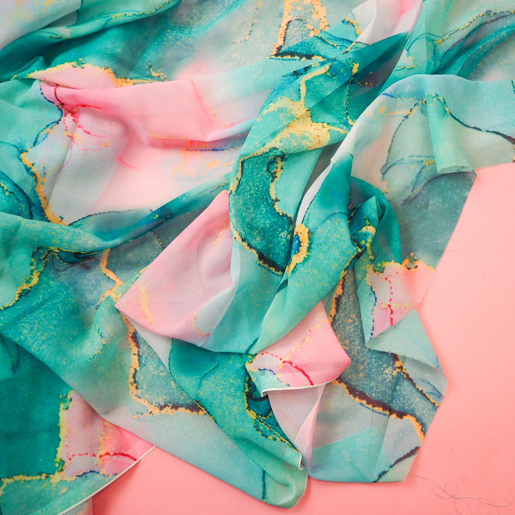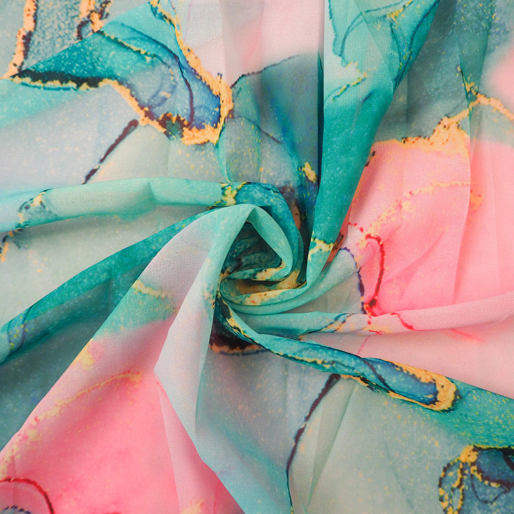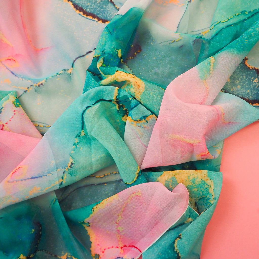 Agate Turquoise and Pink - Polyester Georgette