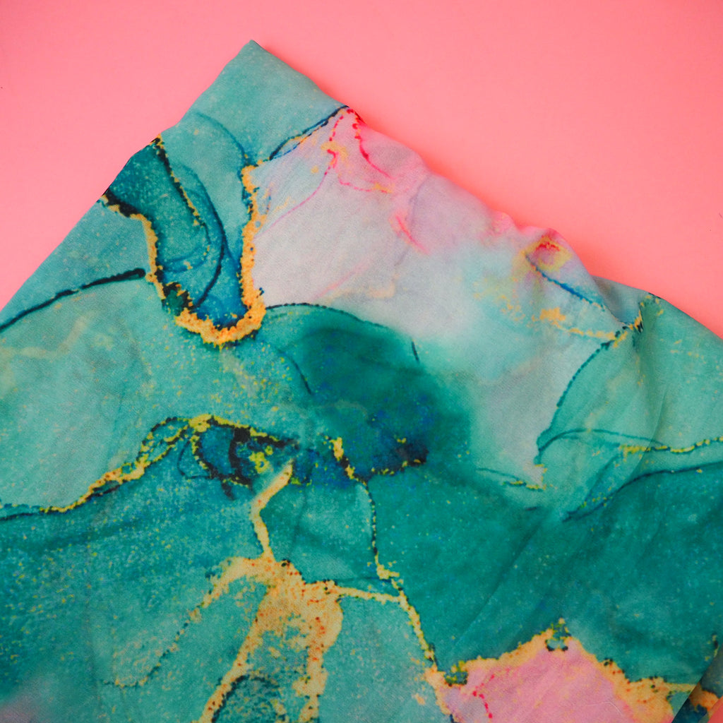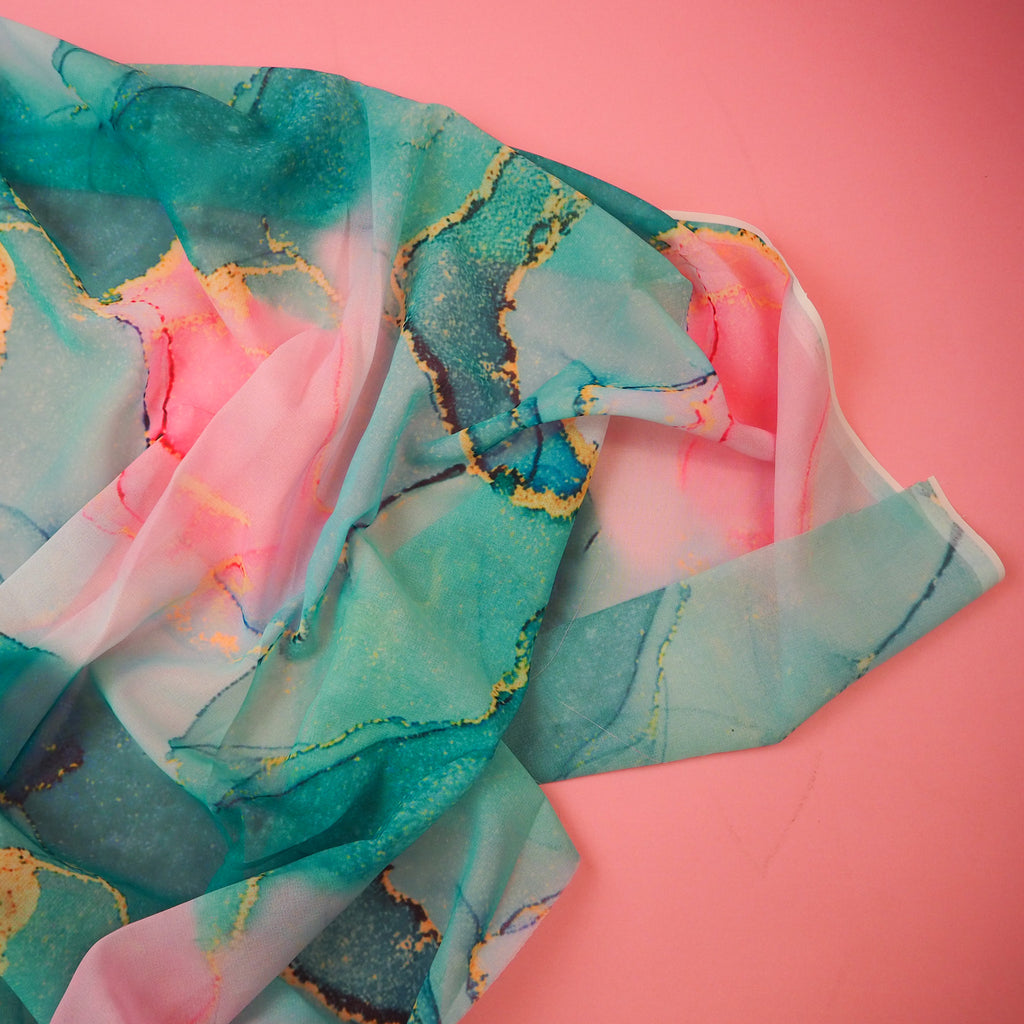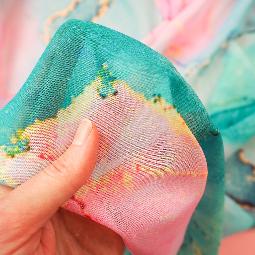 Agate Turquoise and Pink - Polyester Georgette