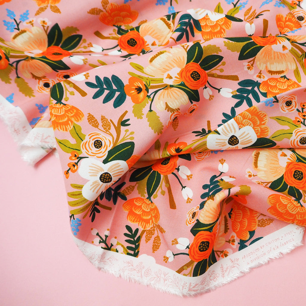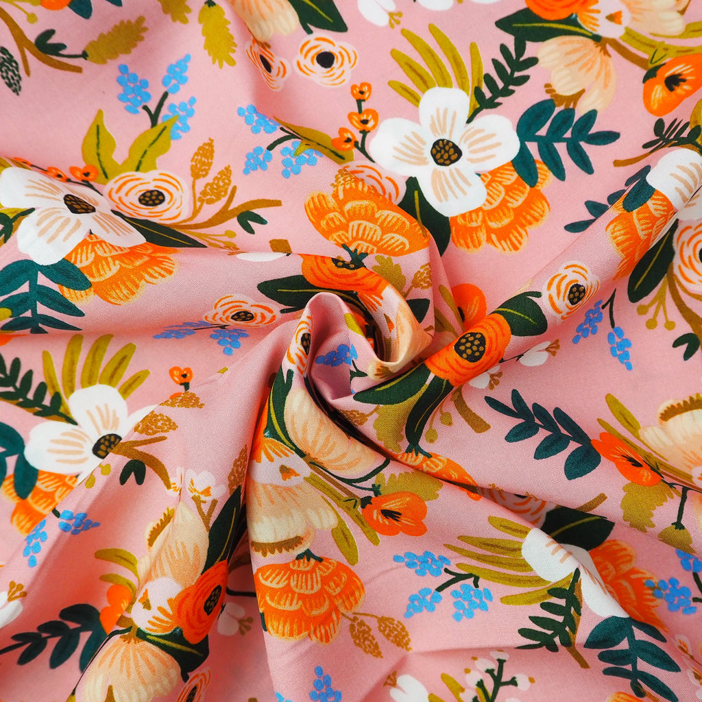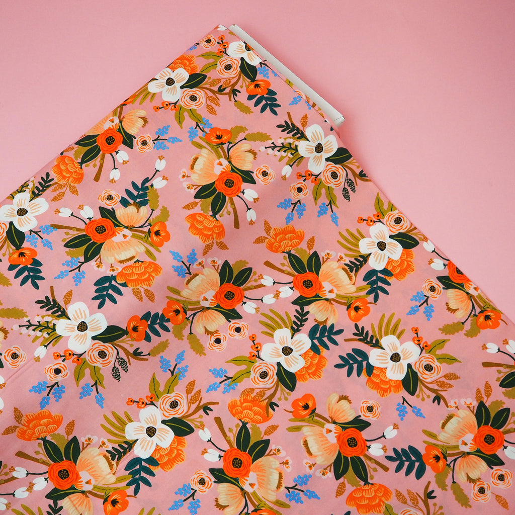 A beautiful floral rayon fabric in coral pink designed by Rifle Paper Co. for Cotton and Steel.