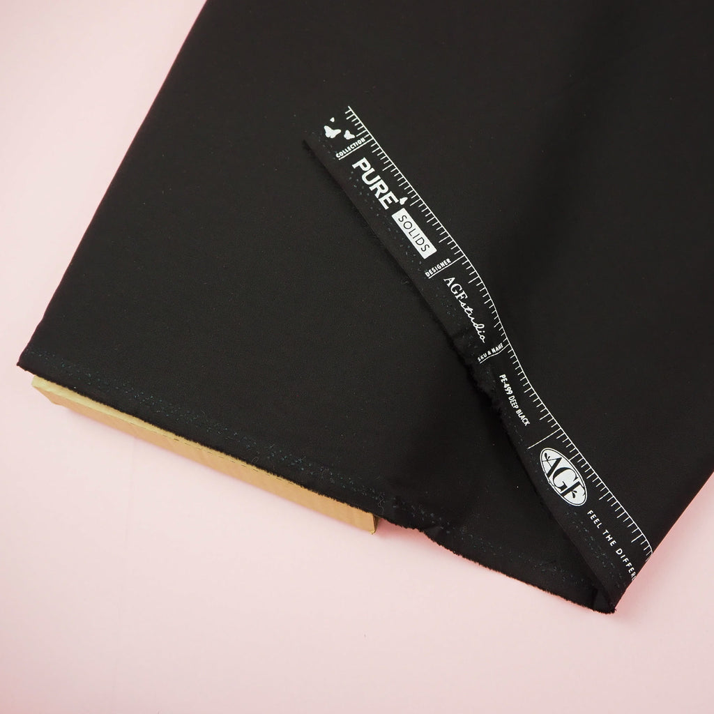 'Deep Black’ is does exactly what is says on the tin. A flat, solid rich black with very little sheen. Great for all your quilting needs!