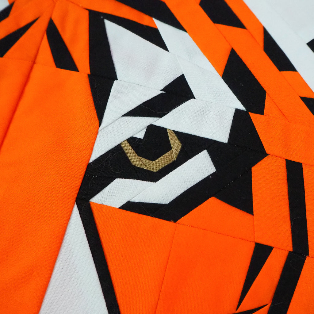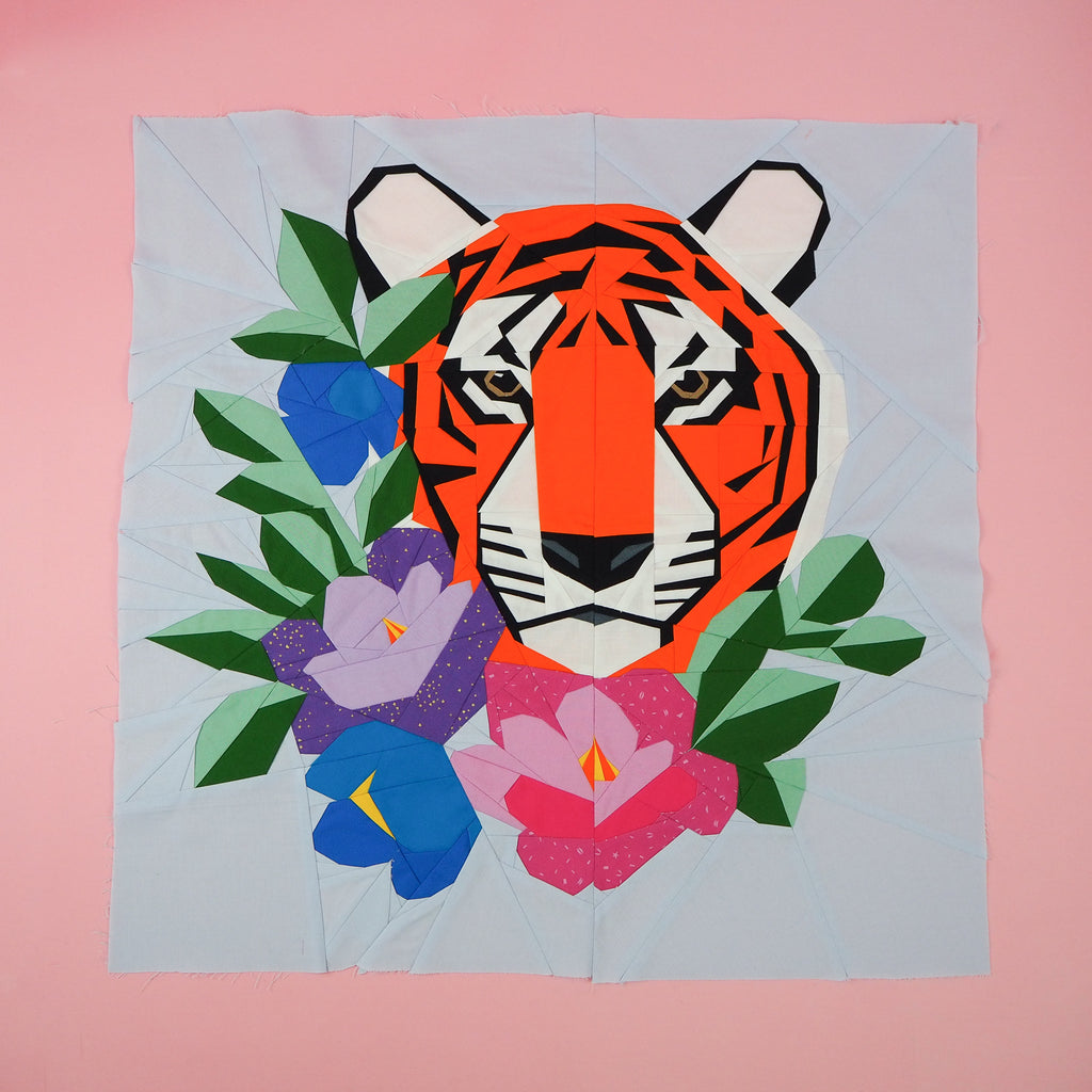 Tiger quilt uses Burnt Orange for the orange areas of the tiger and is a foundation paper piecing project: Floral Big Cats Tiger - Hobby Landing.
