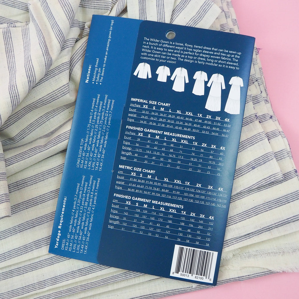 Fabric Suggestions: The Wilder Gown is designed for woven fabrics, but you can create a different look depending on your choice. Fabrics with a lot of drape, like rayon/viscose or silk, will create an elegant look, or if you'd rather go for something more structured you could use linen or a light-weight cotton.