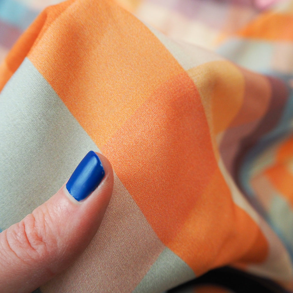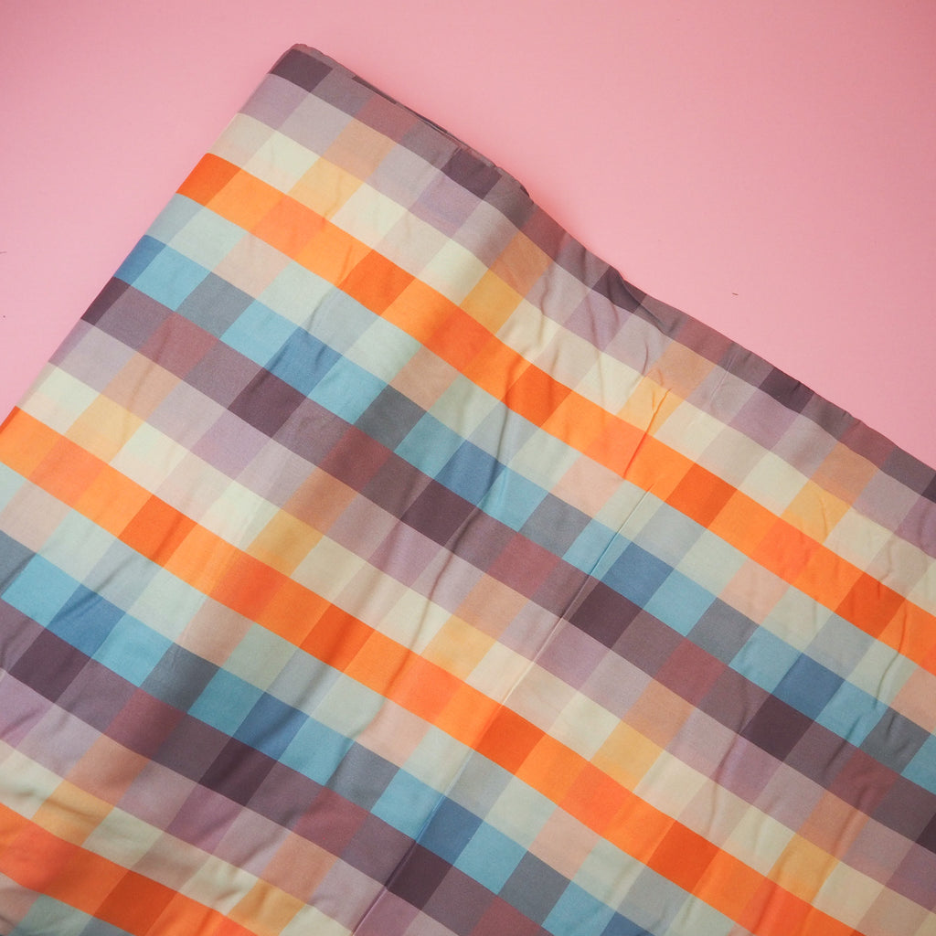 Immerse yourself in the hazy embrace of Slow Summer. Beautiful coloured blocks make up this Oeko-Tex certified rayon fabric designed by Suzy Quilts.