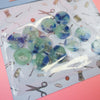 Tough, glossy water-inspired buttons made from resin: each button is one of a kind! These buttons are smooth, tough and lightweight. Sold in packs of 15.