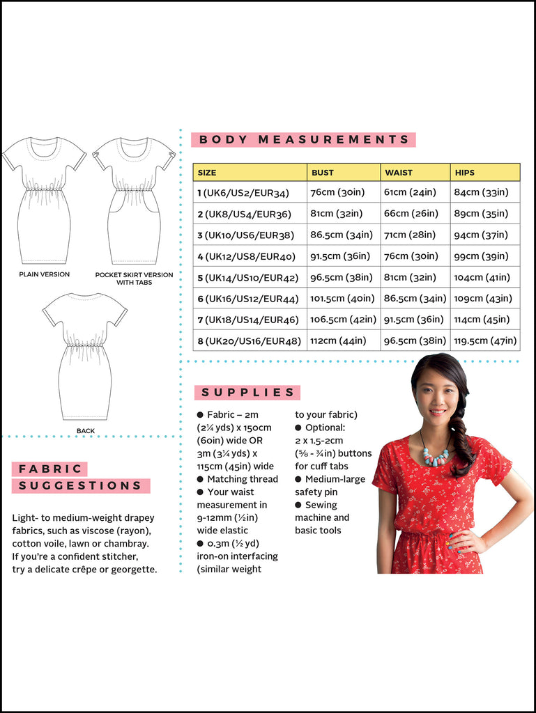 Make your own dress! This is a perfect beginners pattern: you’ll receive a lovely printed package with full-scale pattern sheets and a colour instruction booklet which guides you through each step.
