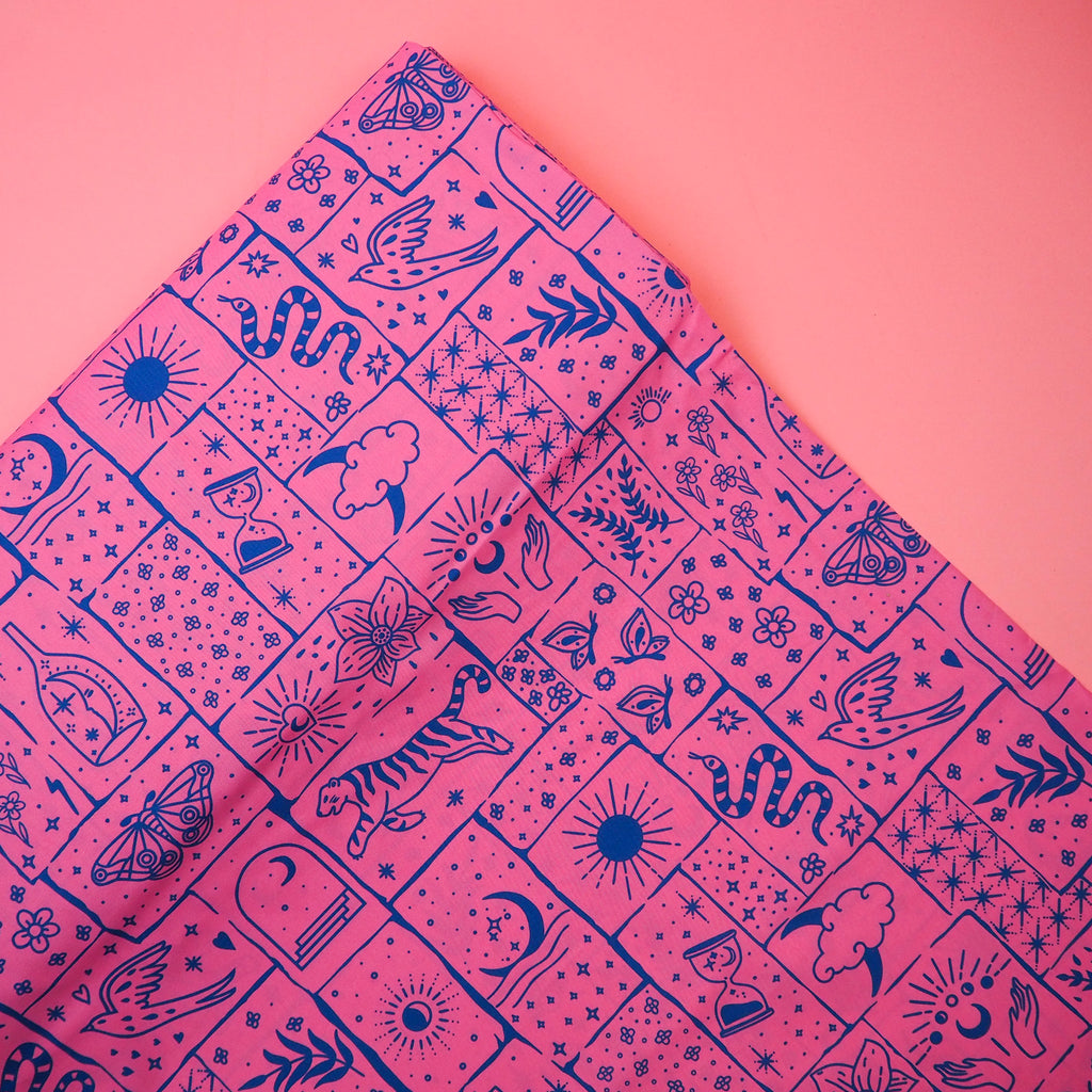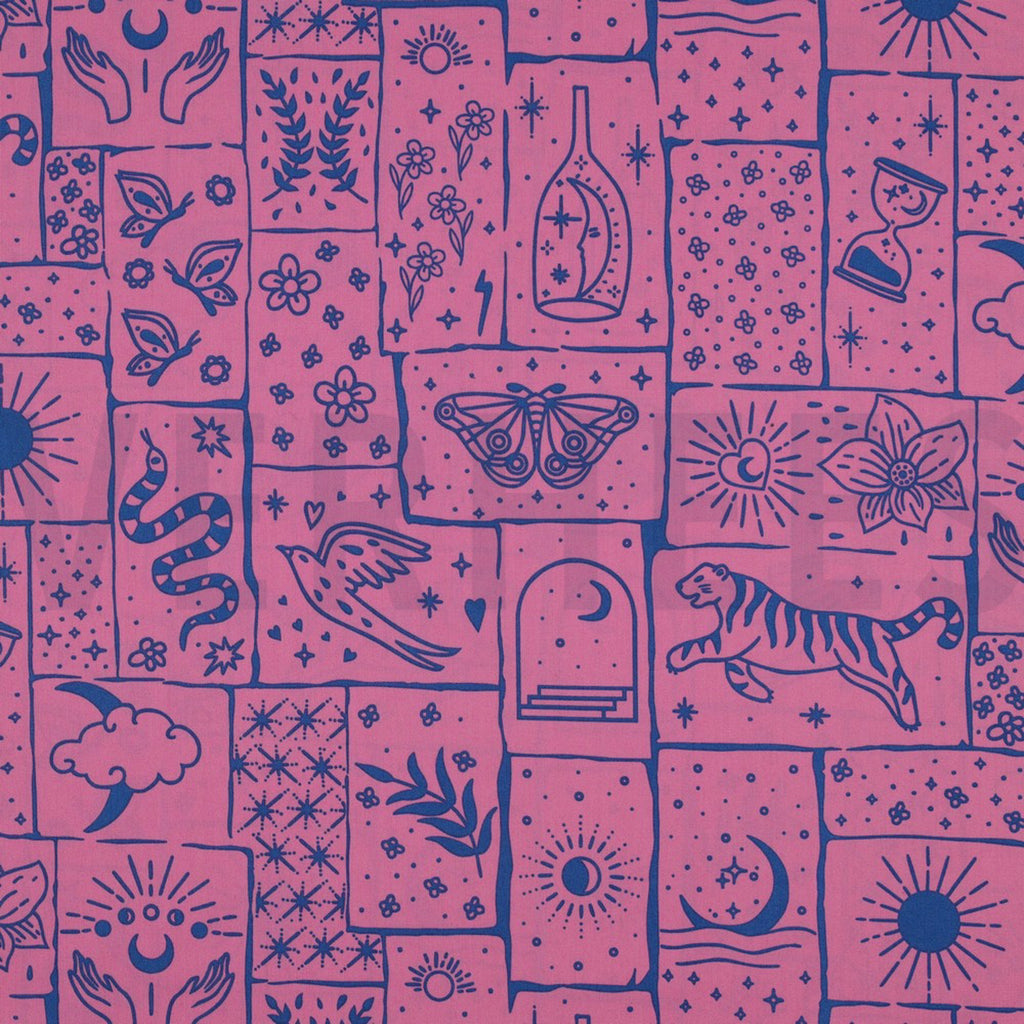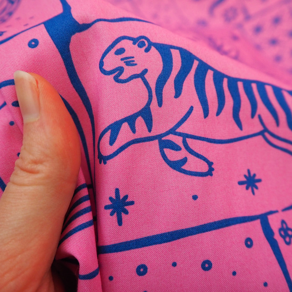 Dreamy print on fine cotton poplin in fuchsia pink and blue!