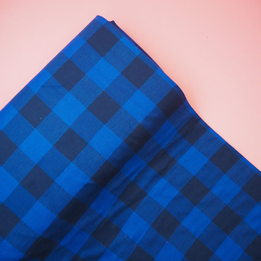 Super soft brushed cotton with large gingham on one side and small (5mm squares) gingham on the other! A lovely deep blue and navy.