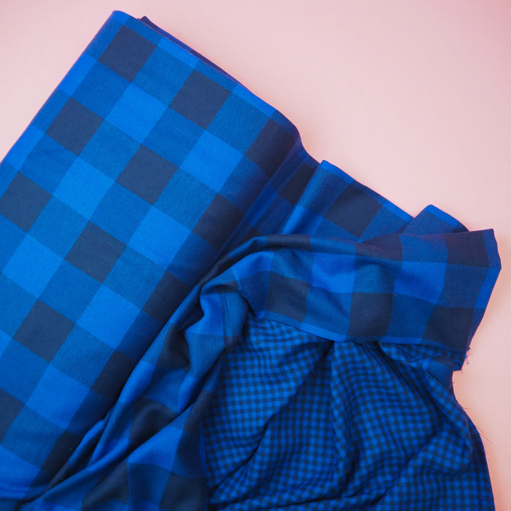 Double Sided Gingham Indigo Blue - Brushed Cotton