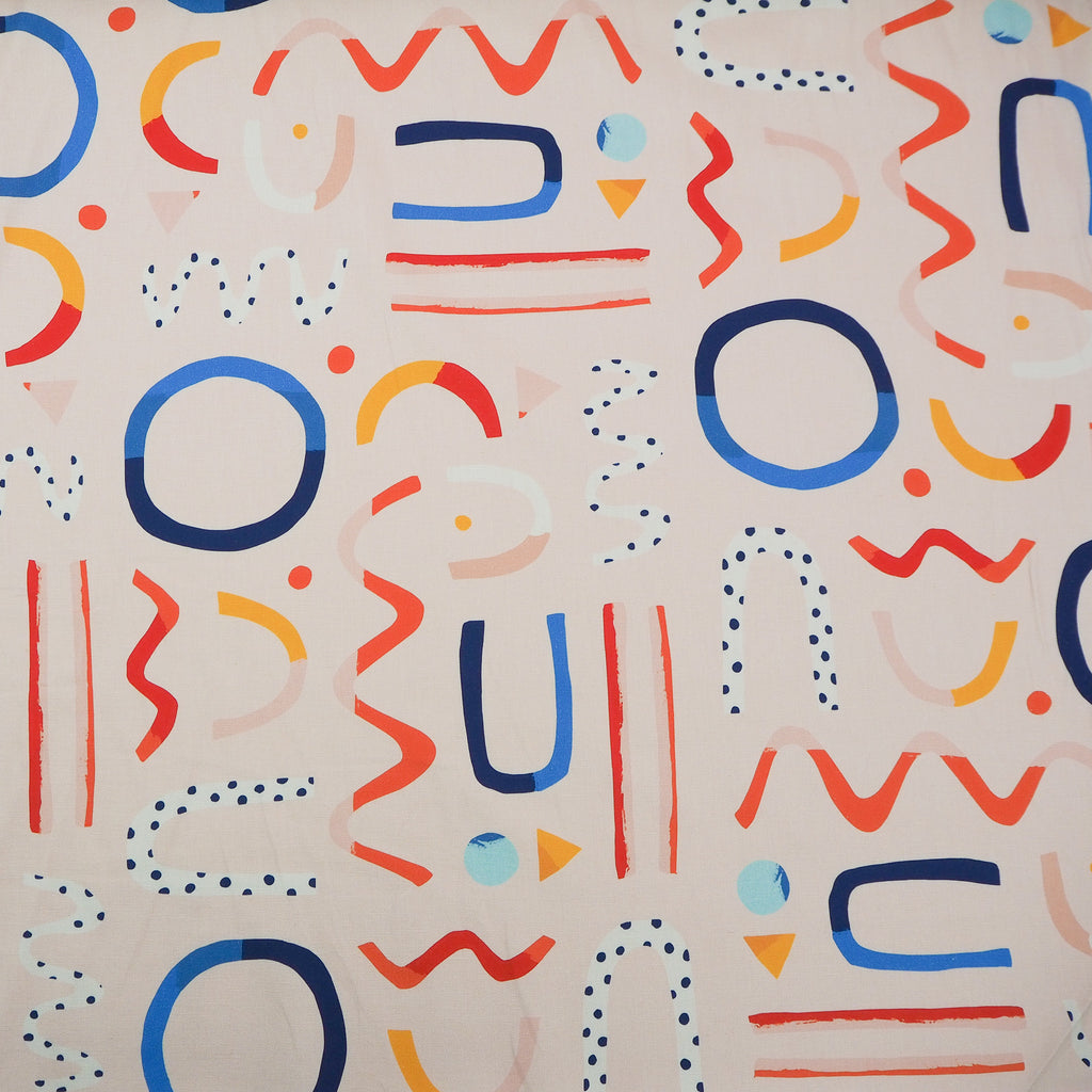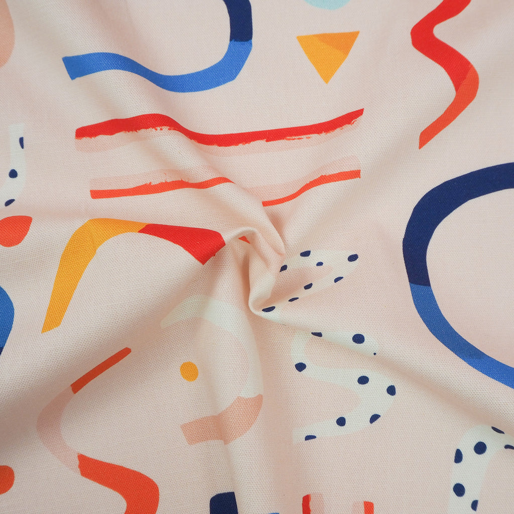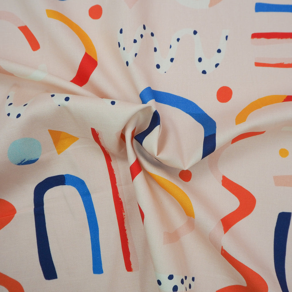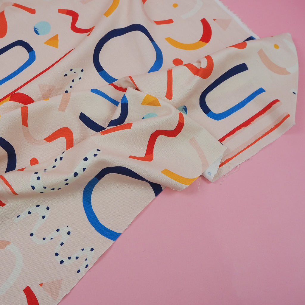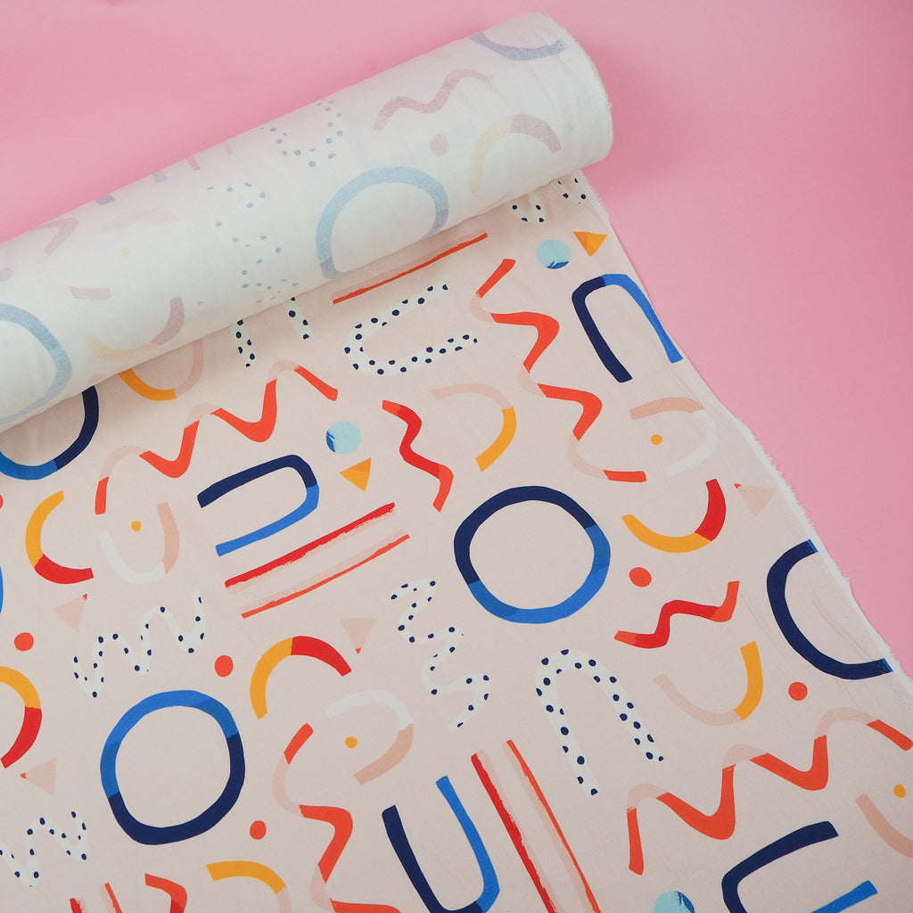 Beautiful large-scale squiggly abstract print on a pale pink background from designer Brook Gossen. Imported from Nerida Hansen, based in Australia, this statement print is great for all sorts of projects. This would be great for a skirt with large panels to show off the pattern or even a laptop or iPad case.