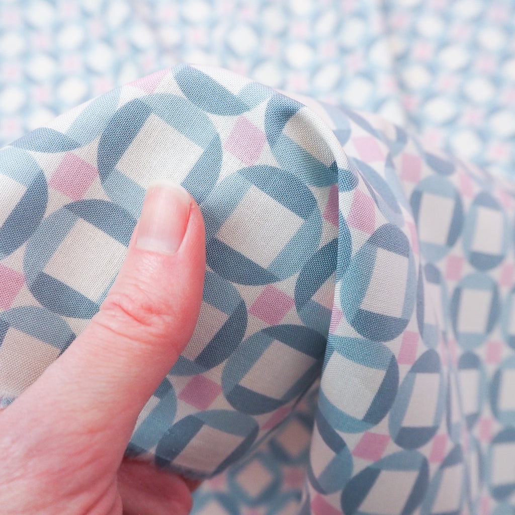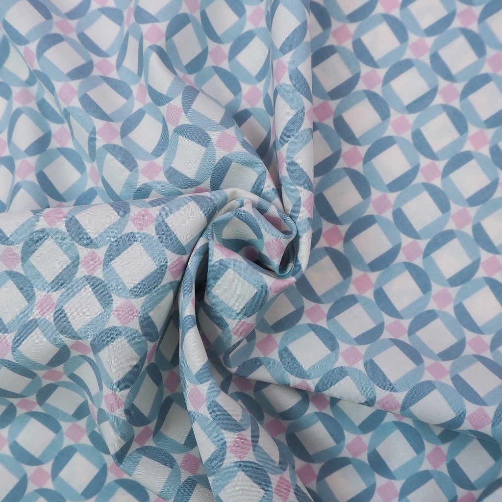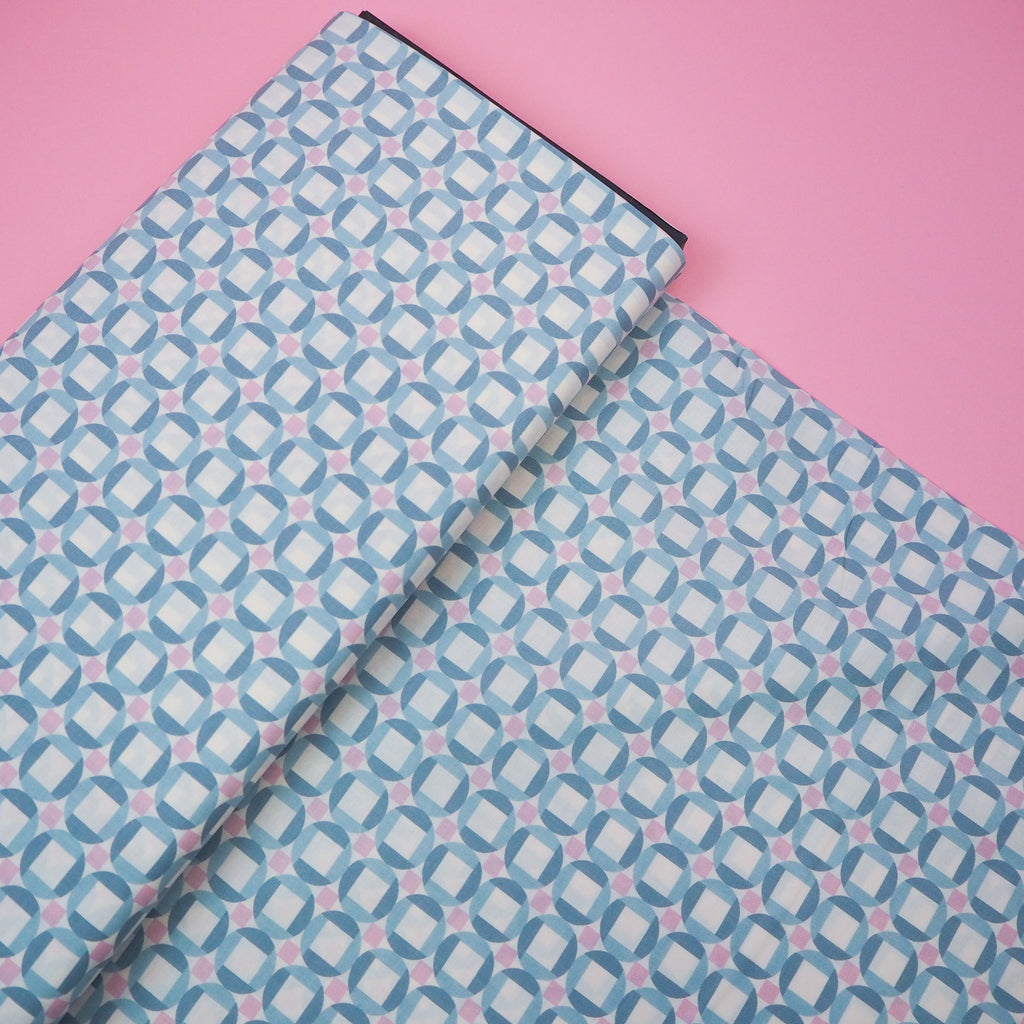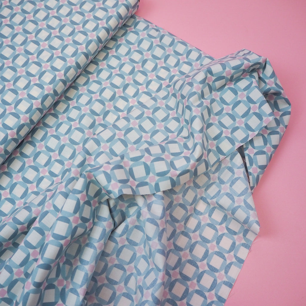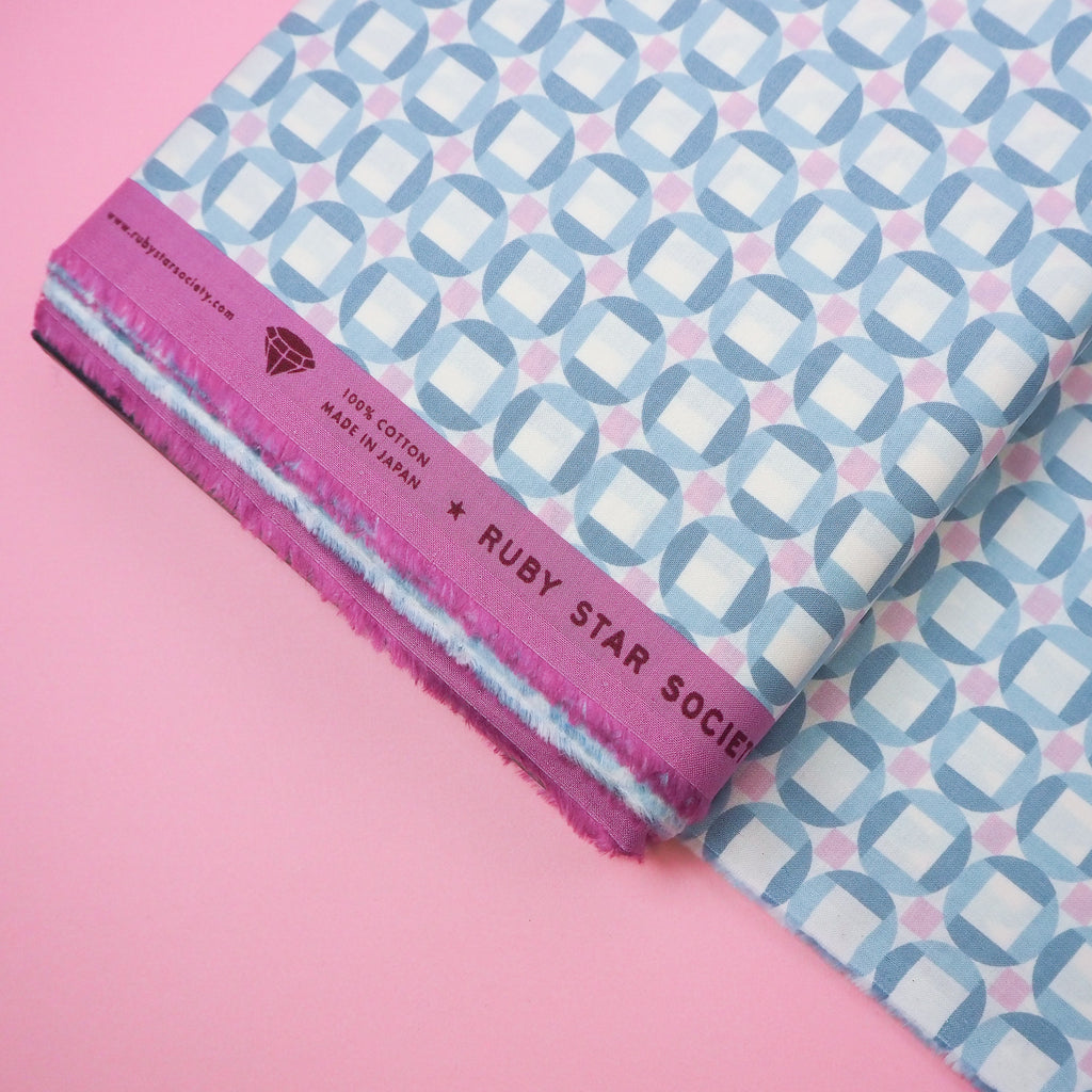 Sky blue, pink and cream print cotton designed by Jen Hewett for Ruby Star Society.