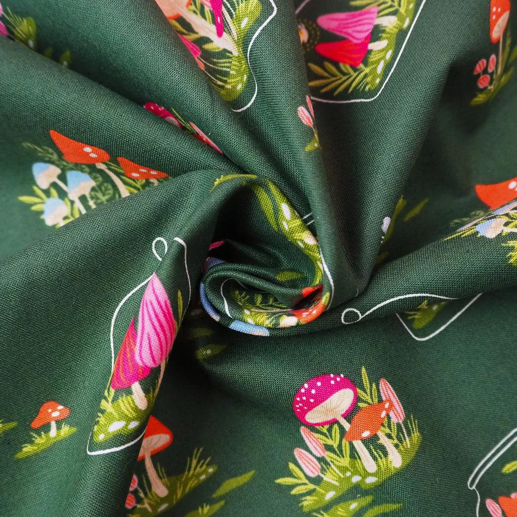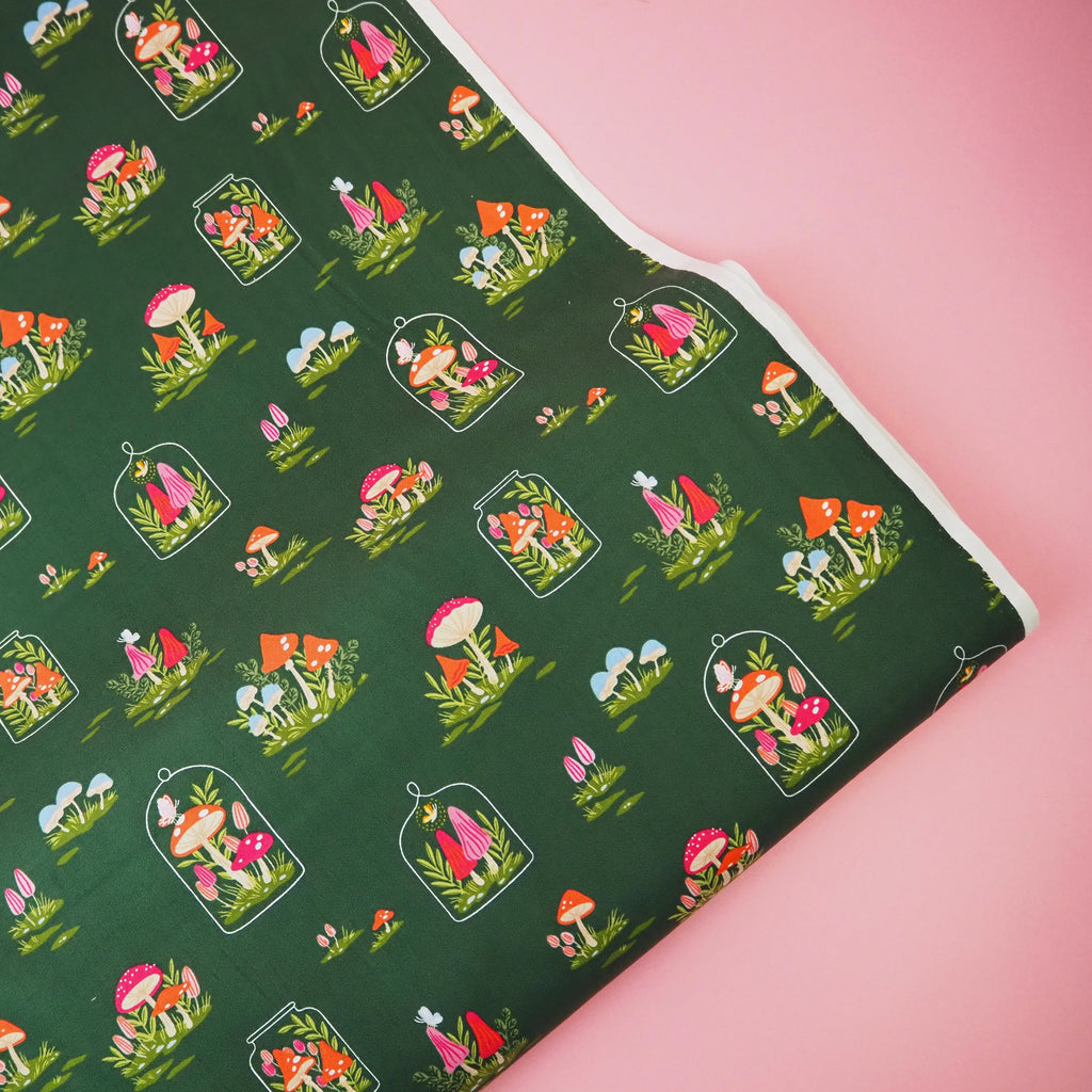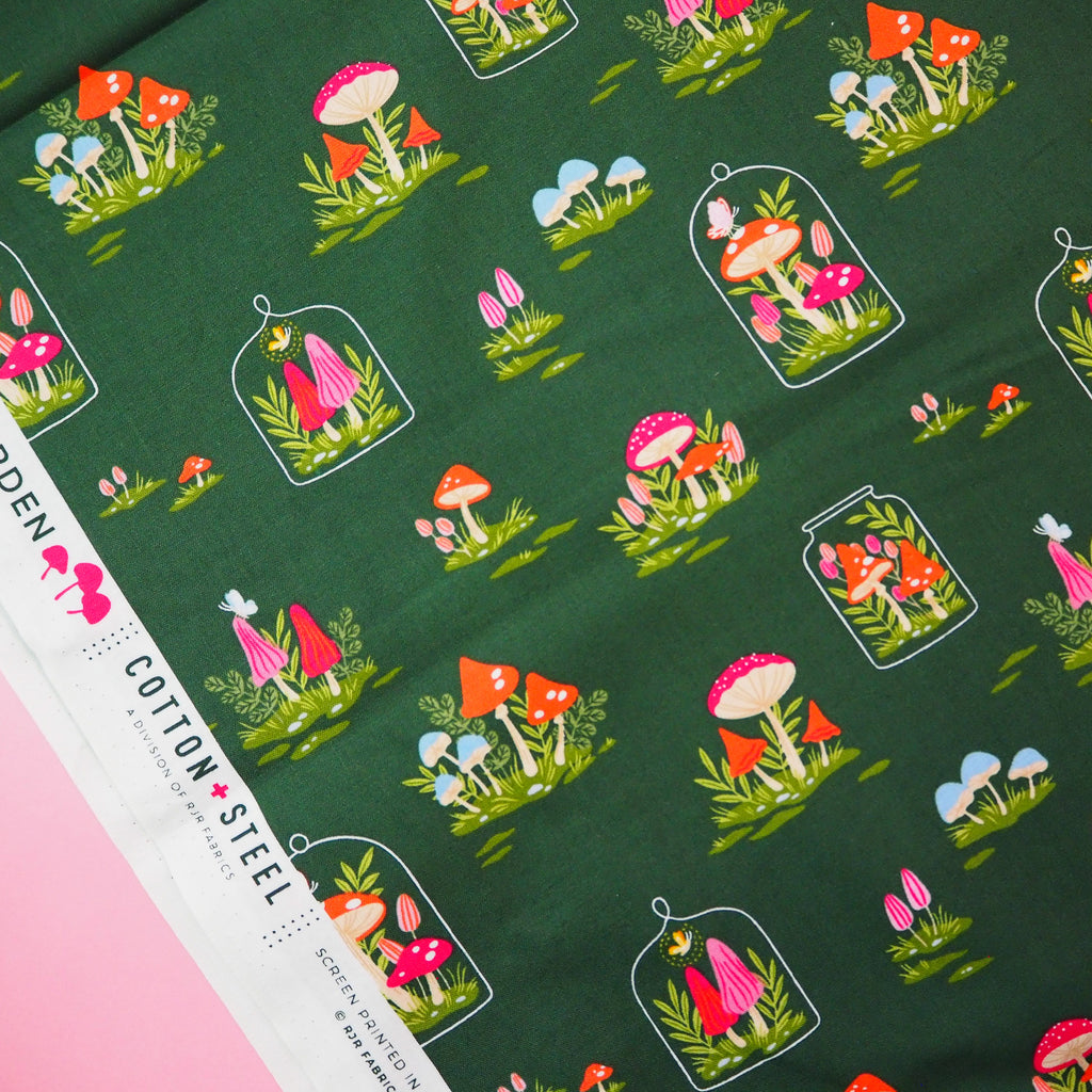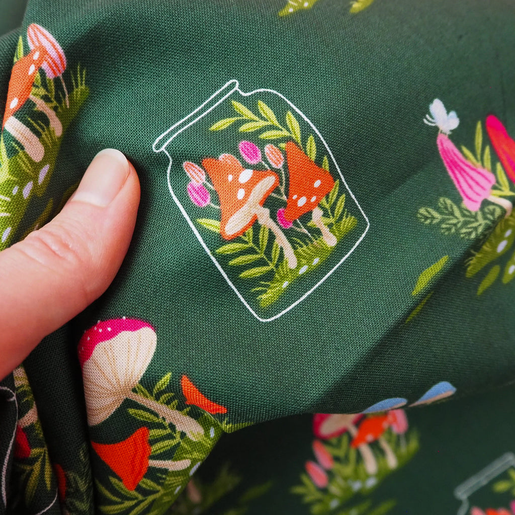 Deep green cotton from Cotton and Steel with the sweetest mushroom print.