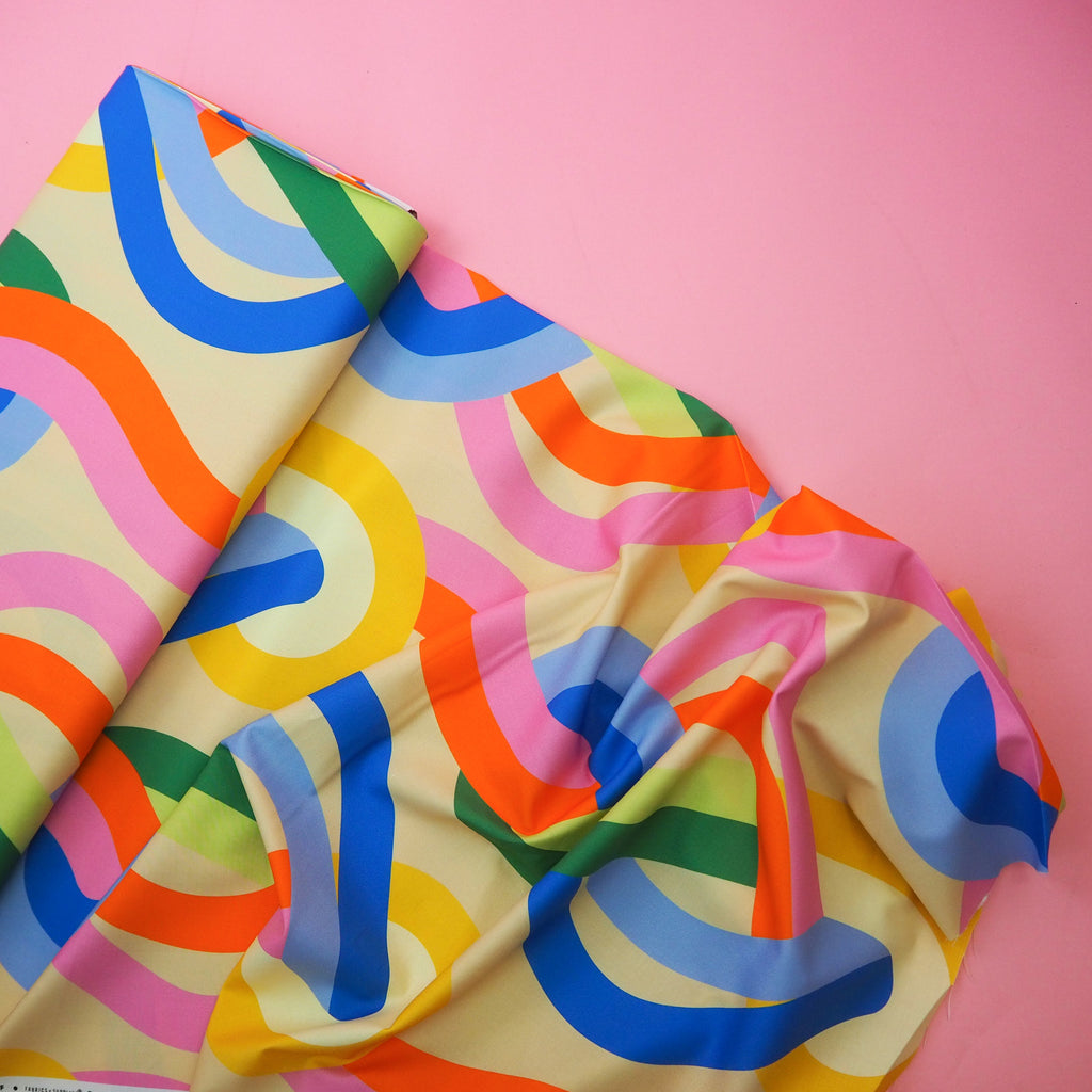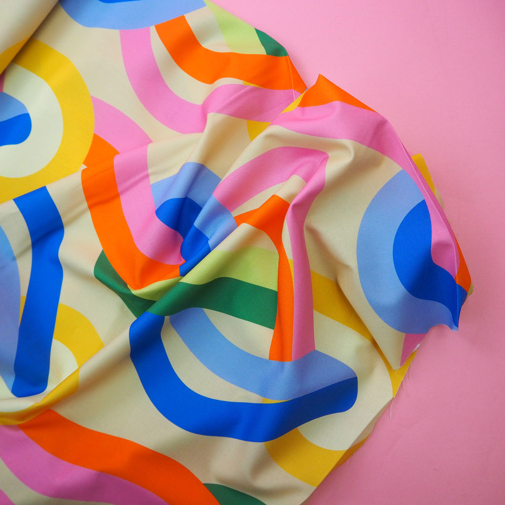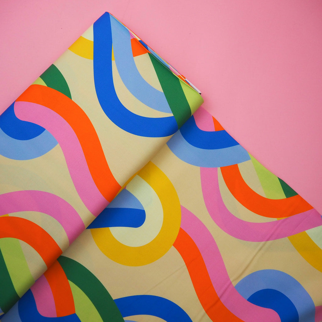 Gorgeous twists of colour on cream cotton from the Groove collection designed by Emily Van Hoff for Moda Fabrics.