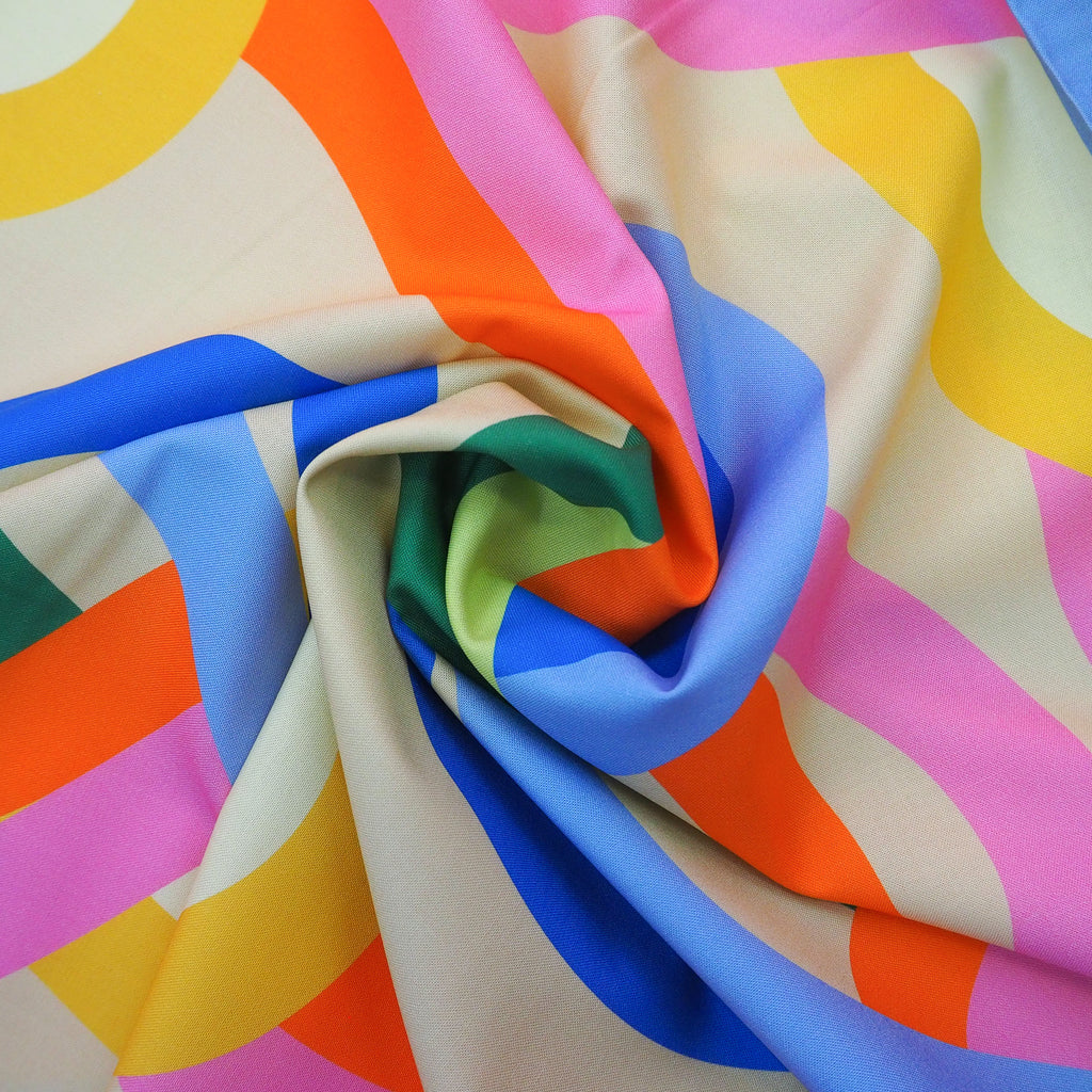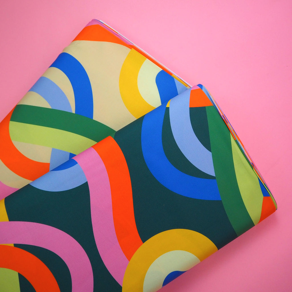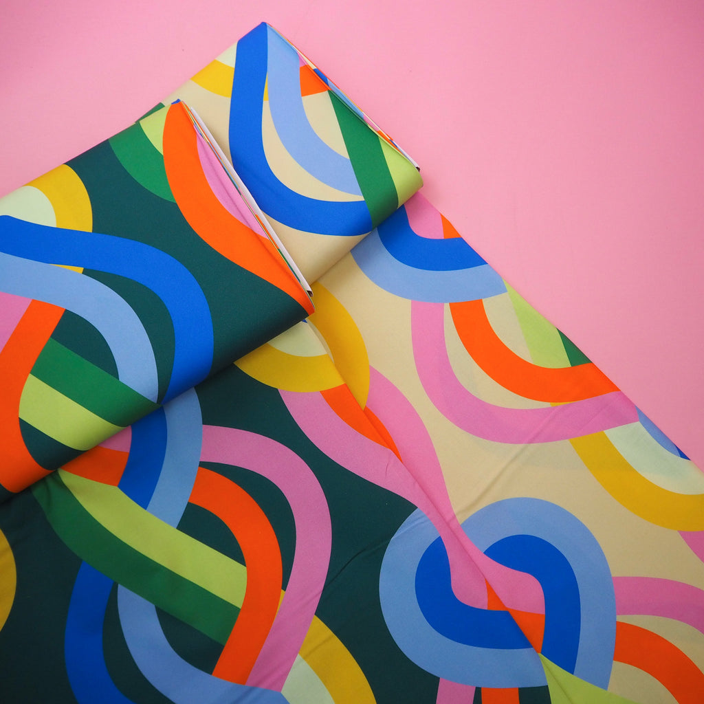 Gorgeous twists of colour on cream cotton from the Groove collection designed by Emily Van Hoff for Moda Fabrics.