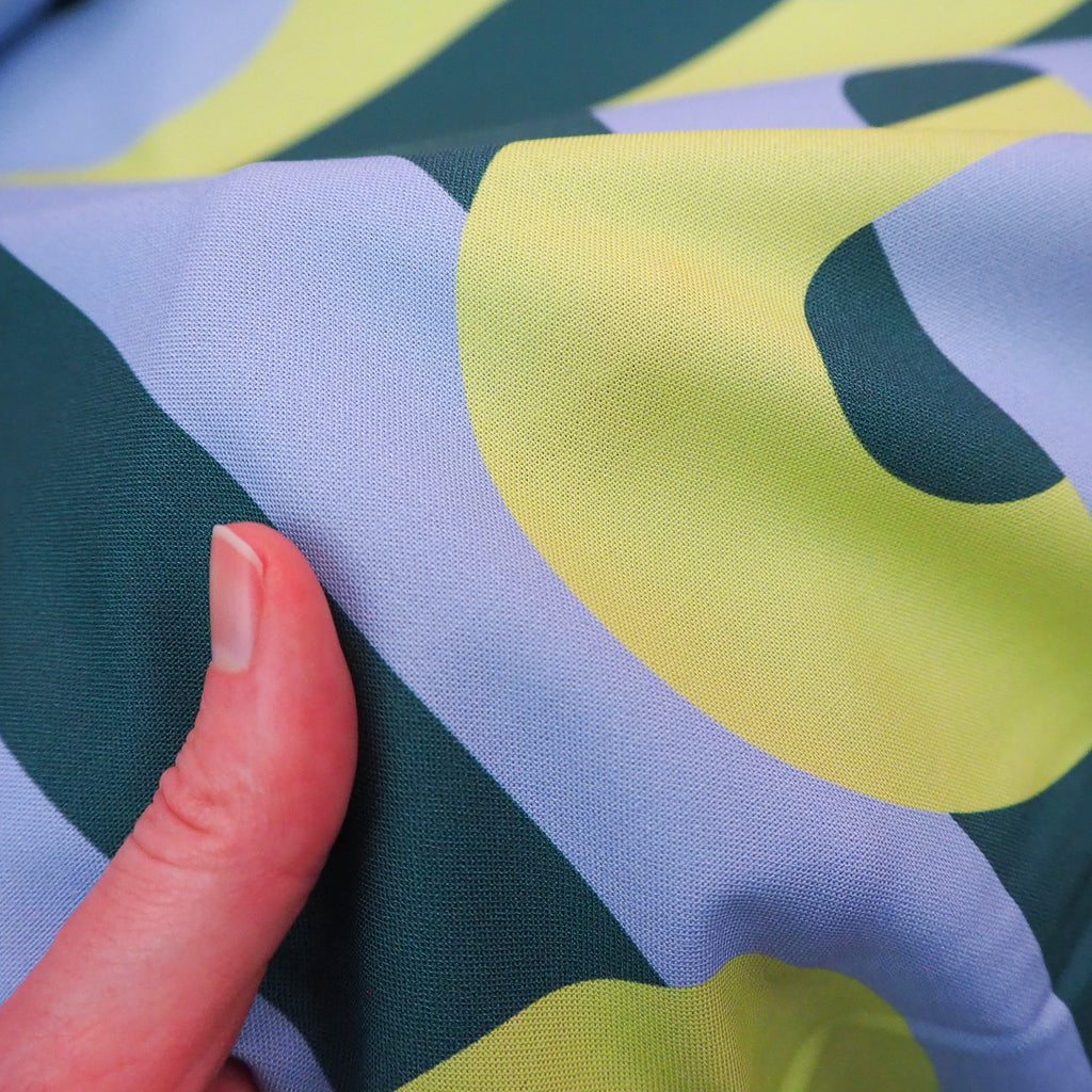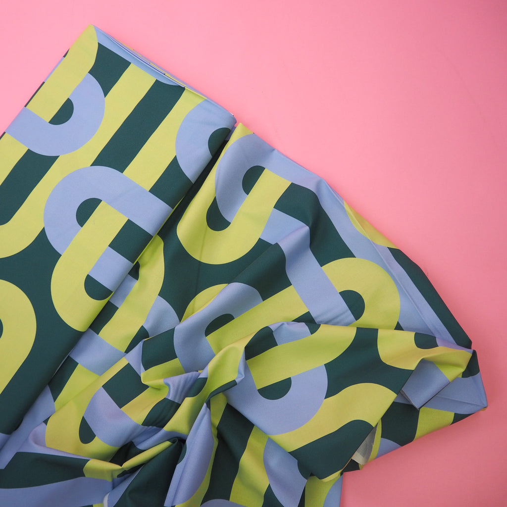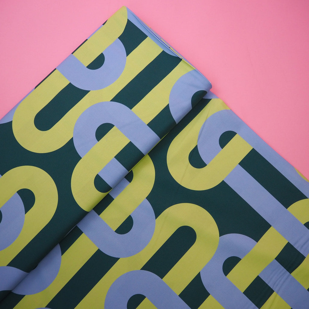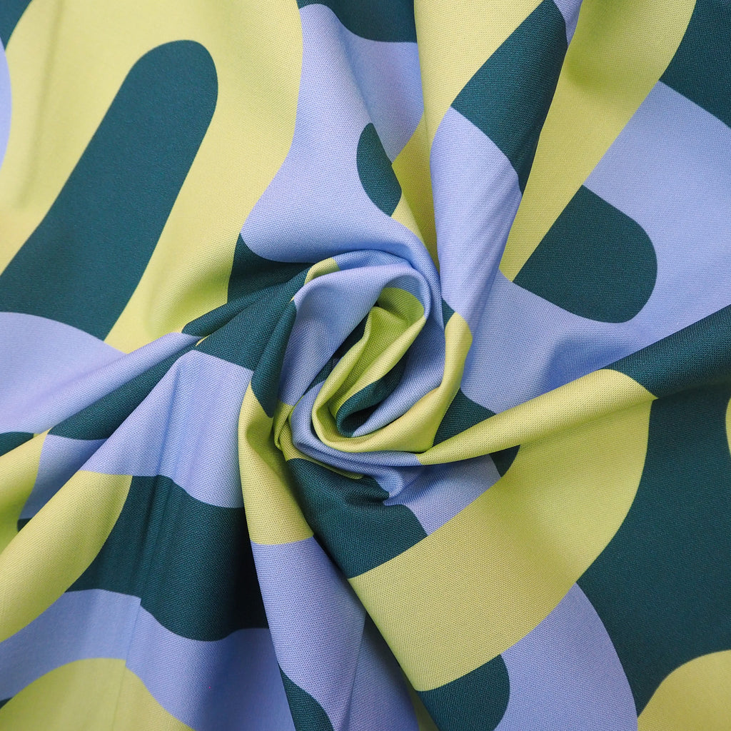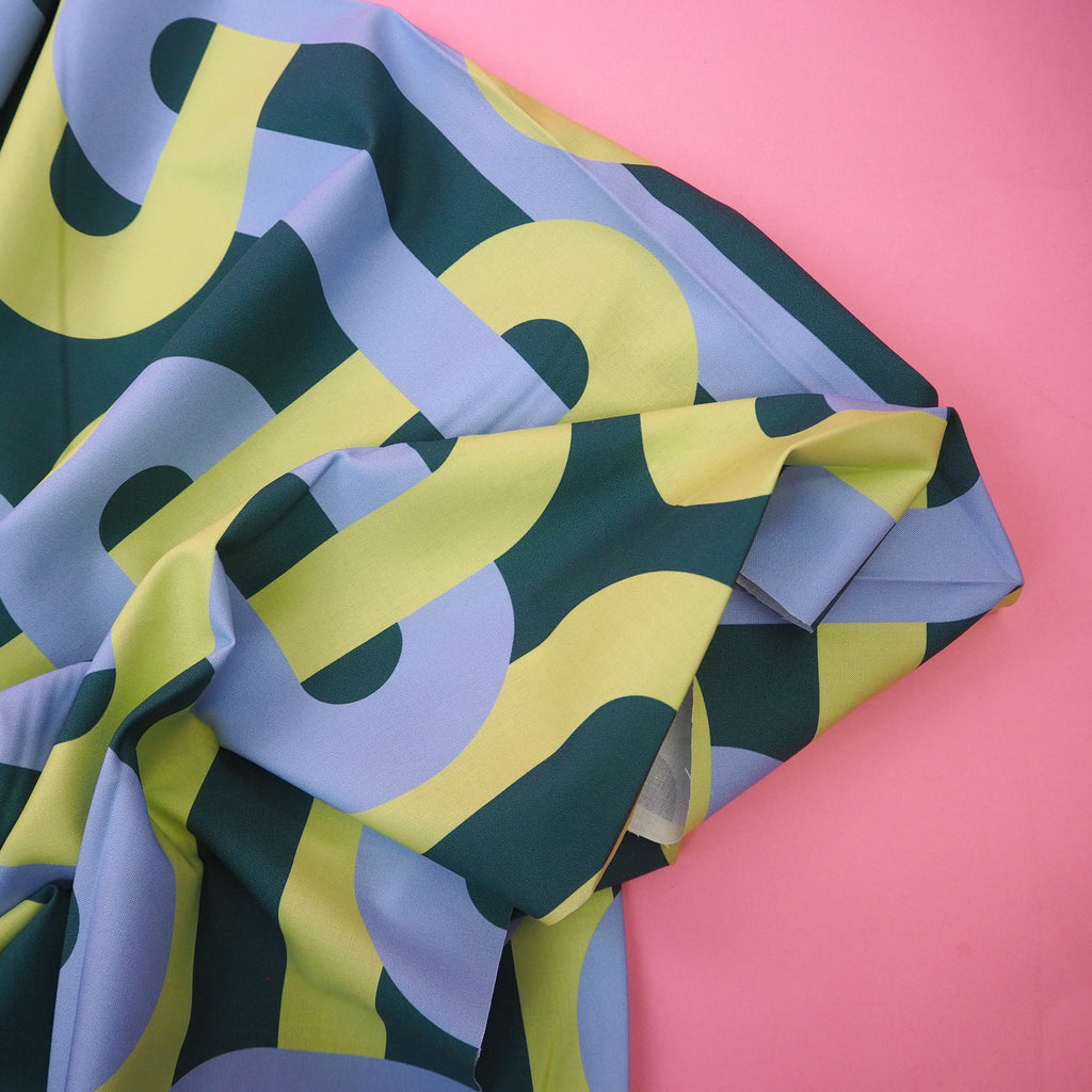 Green and blue on a teal background on cotton from the Groove collection designed by Emily Van Hoff for Moda Fabrics.