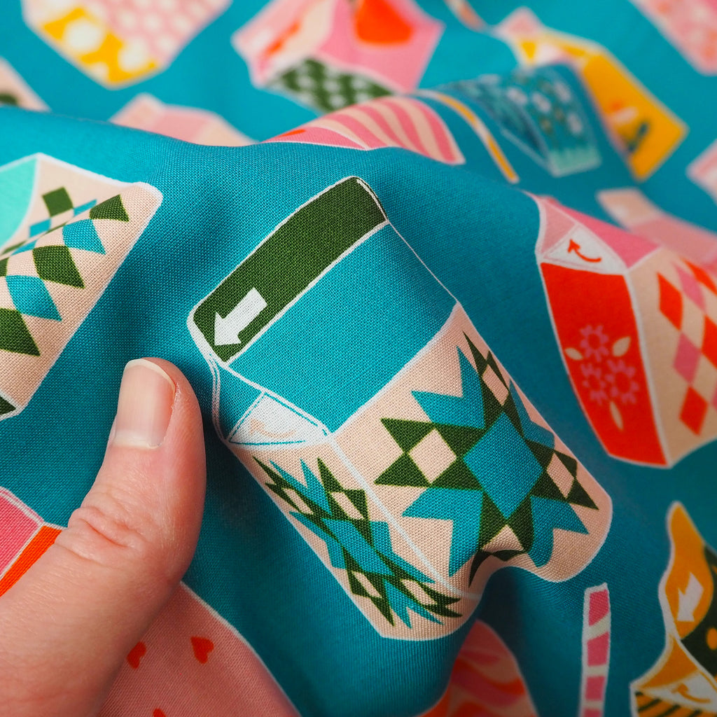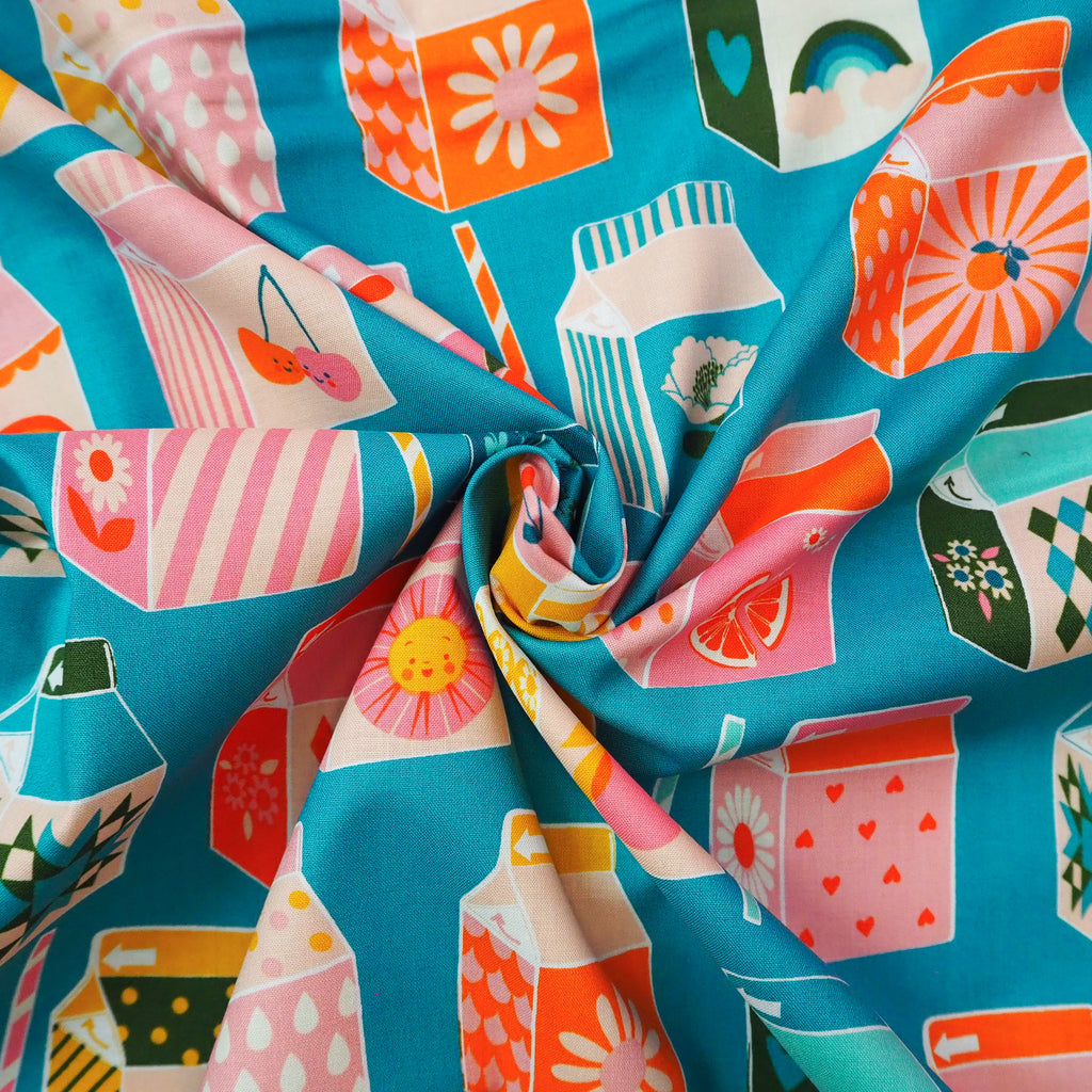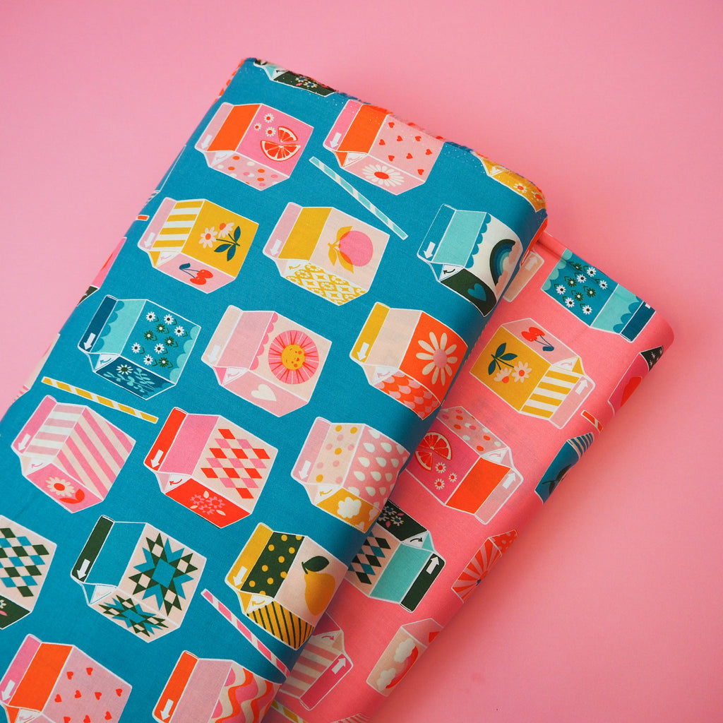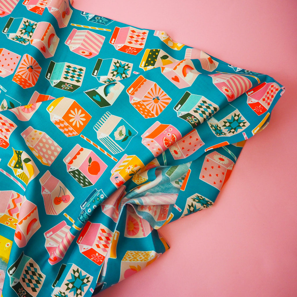 Juice cartons on a dark turquoise background designed by Melody Miller for Ruby Star Society.