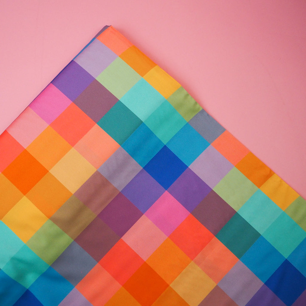This bold, colourful check is the first ever Grid Fabrics designed fabric!