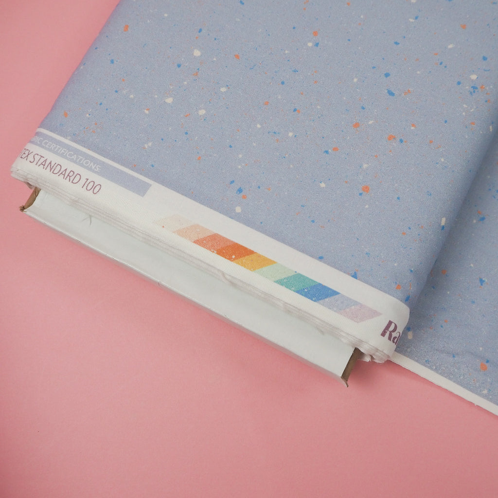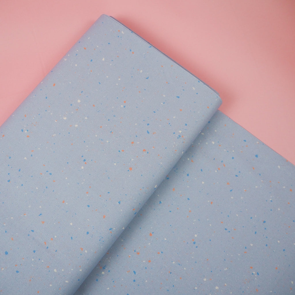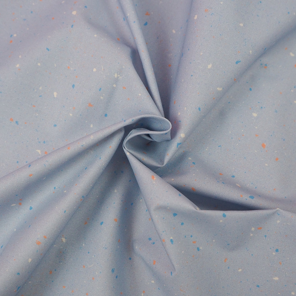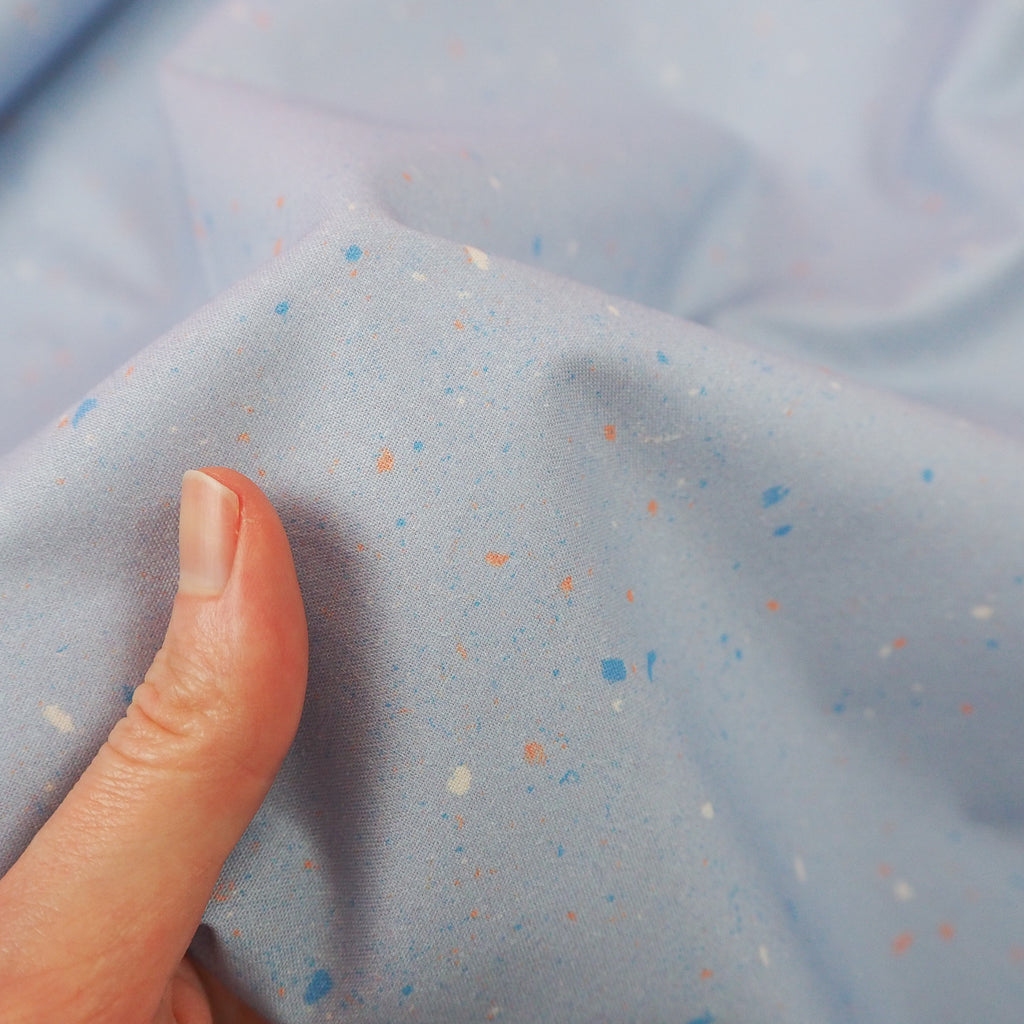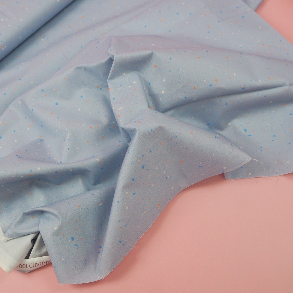 Dusk cotton with gentle terrazzo style speckling of white, sienna and sky.