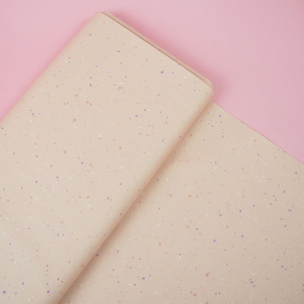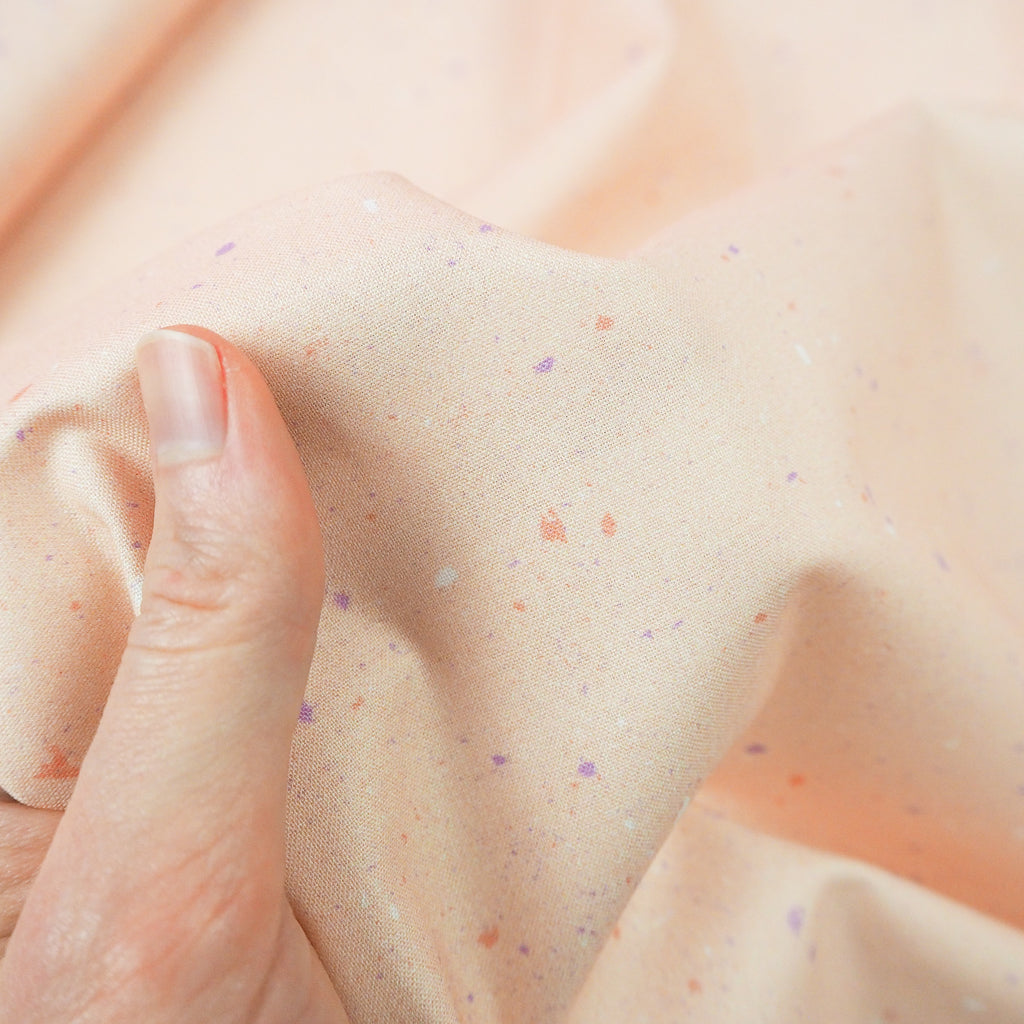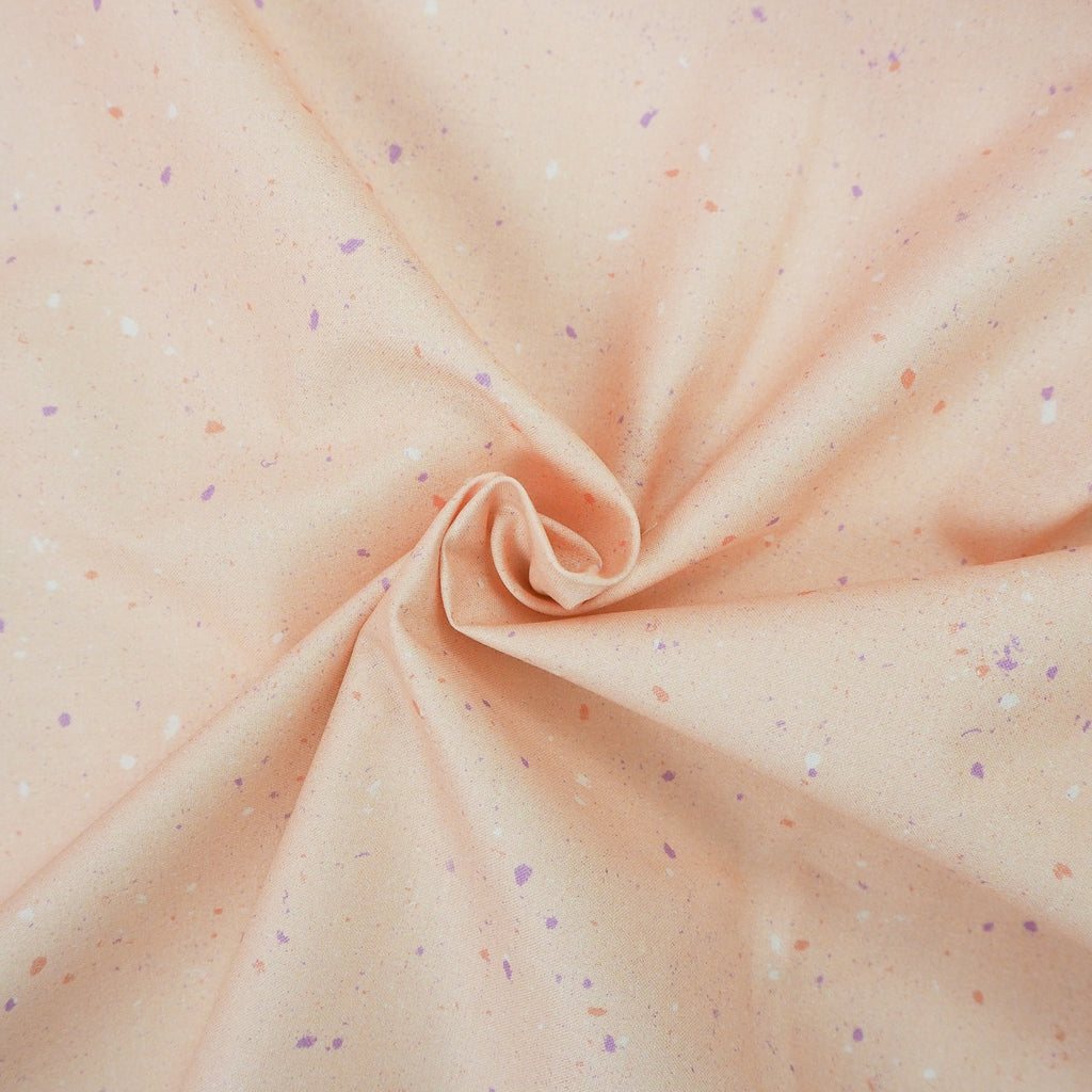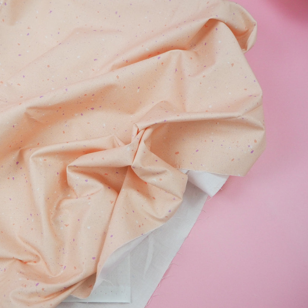 Peach cotton with gentle terrazzo style speckling of cream, sienna and lilac.