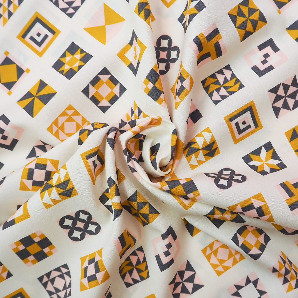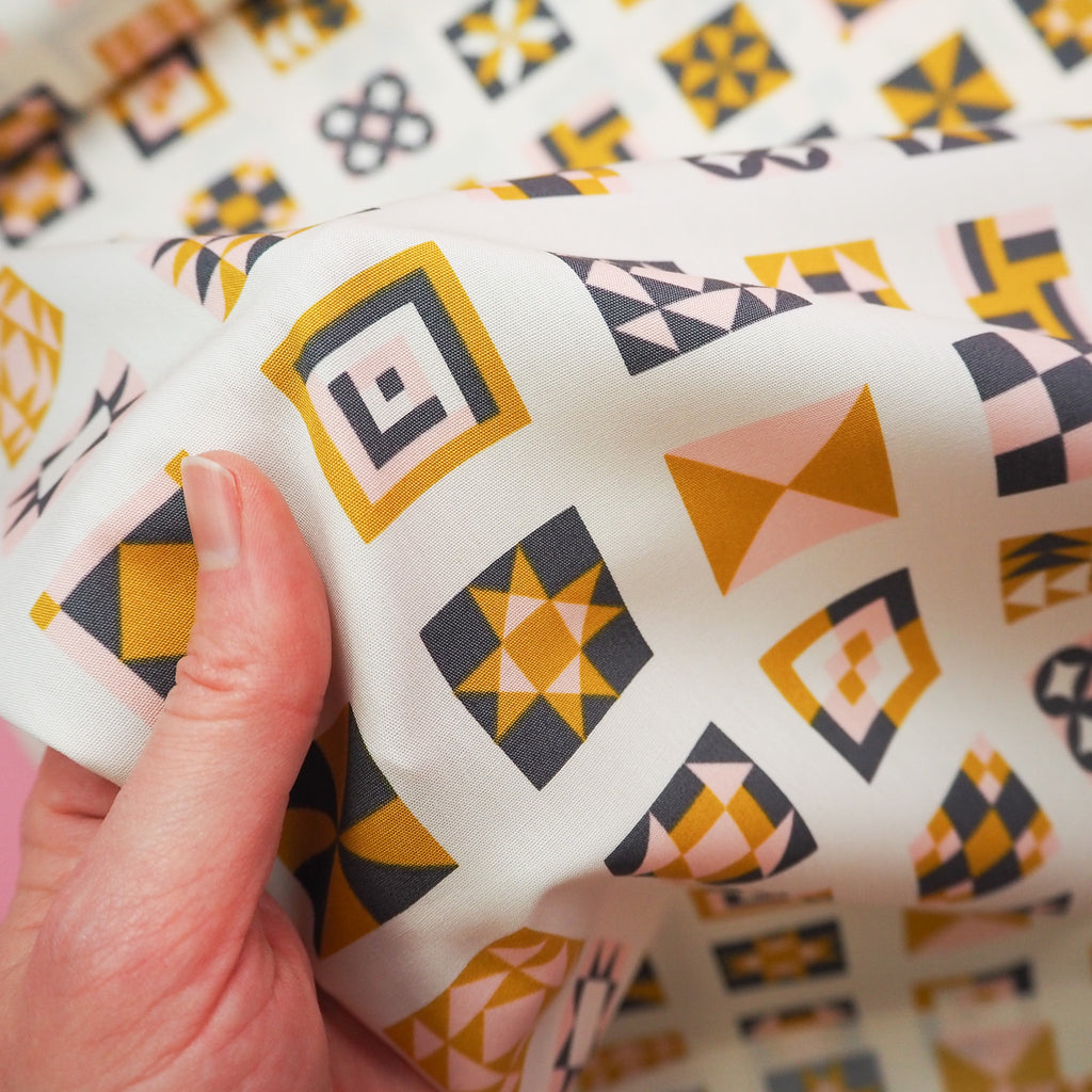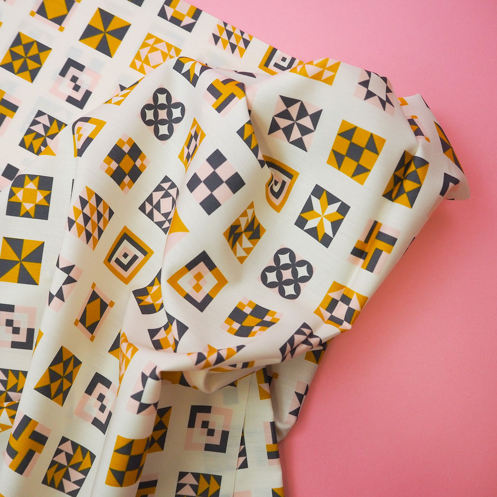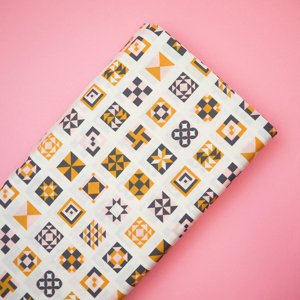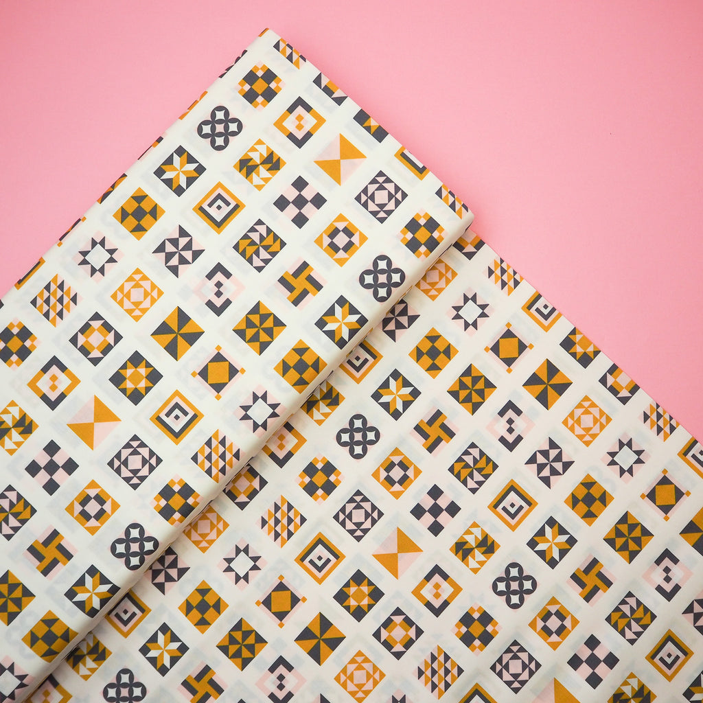 Pretty quilt blocks printed on a cream background - beautiful Oeko-Tex certified cotton fabric.