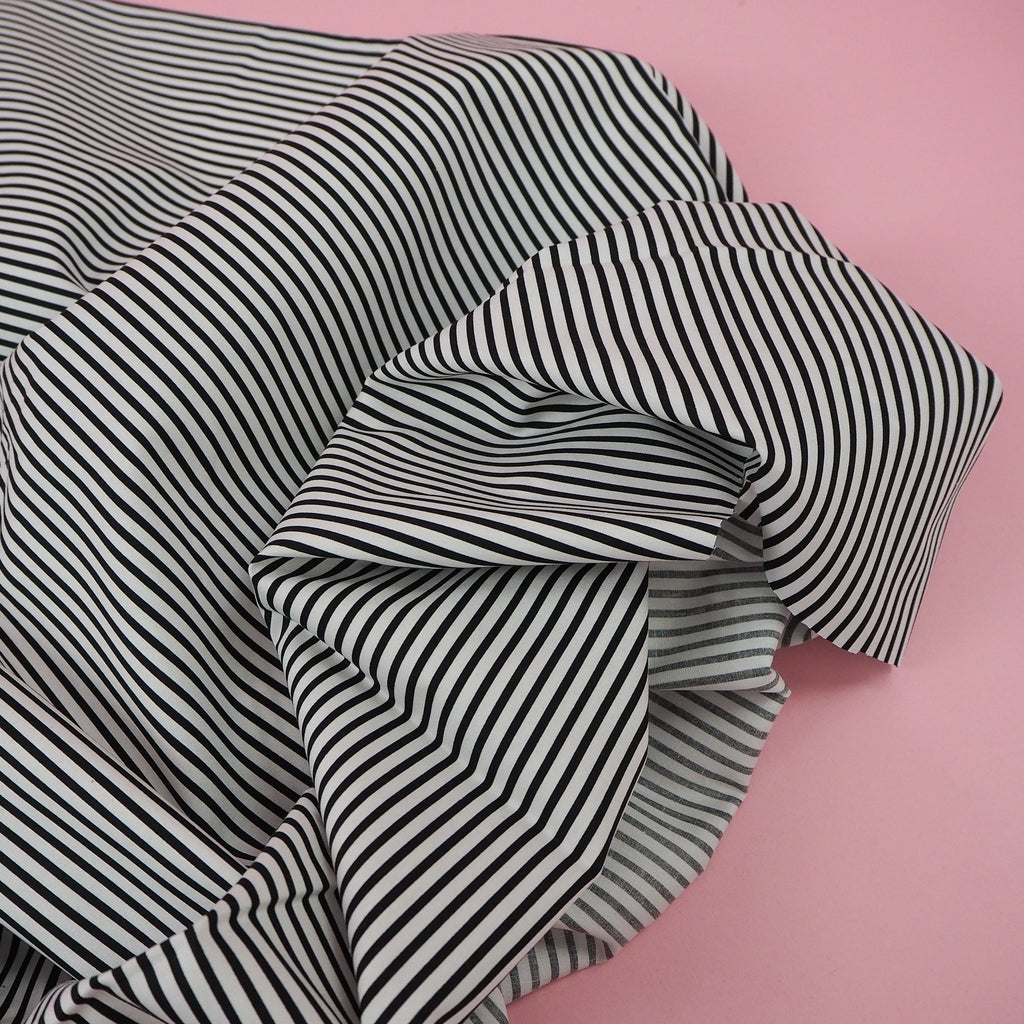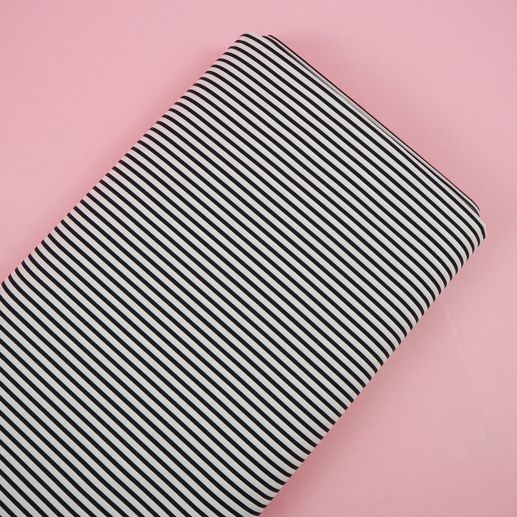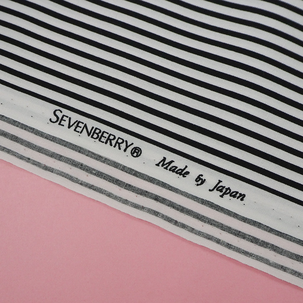 Smooth white cotton with narrow black stripes from Japanese brand Sevenberry. A classic print useful for lots of projects.