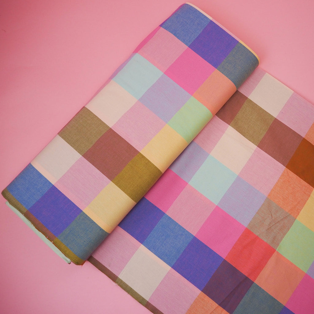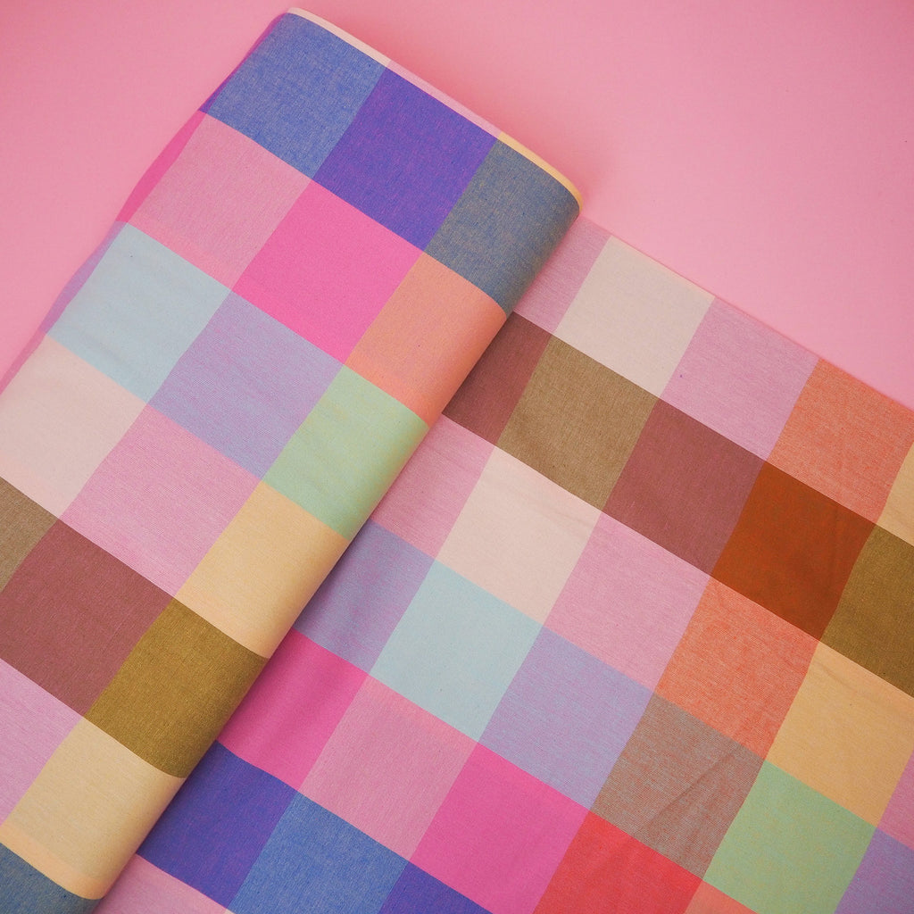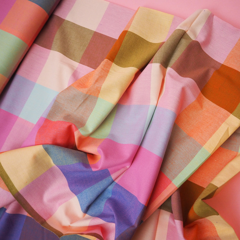 Colourful plaid cotton from the Swedish Holiday range from Fableism! This range is inspired by long days of a sun-drenched Swedish summer and the carefree frolics through a flora-filled meadow.