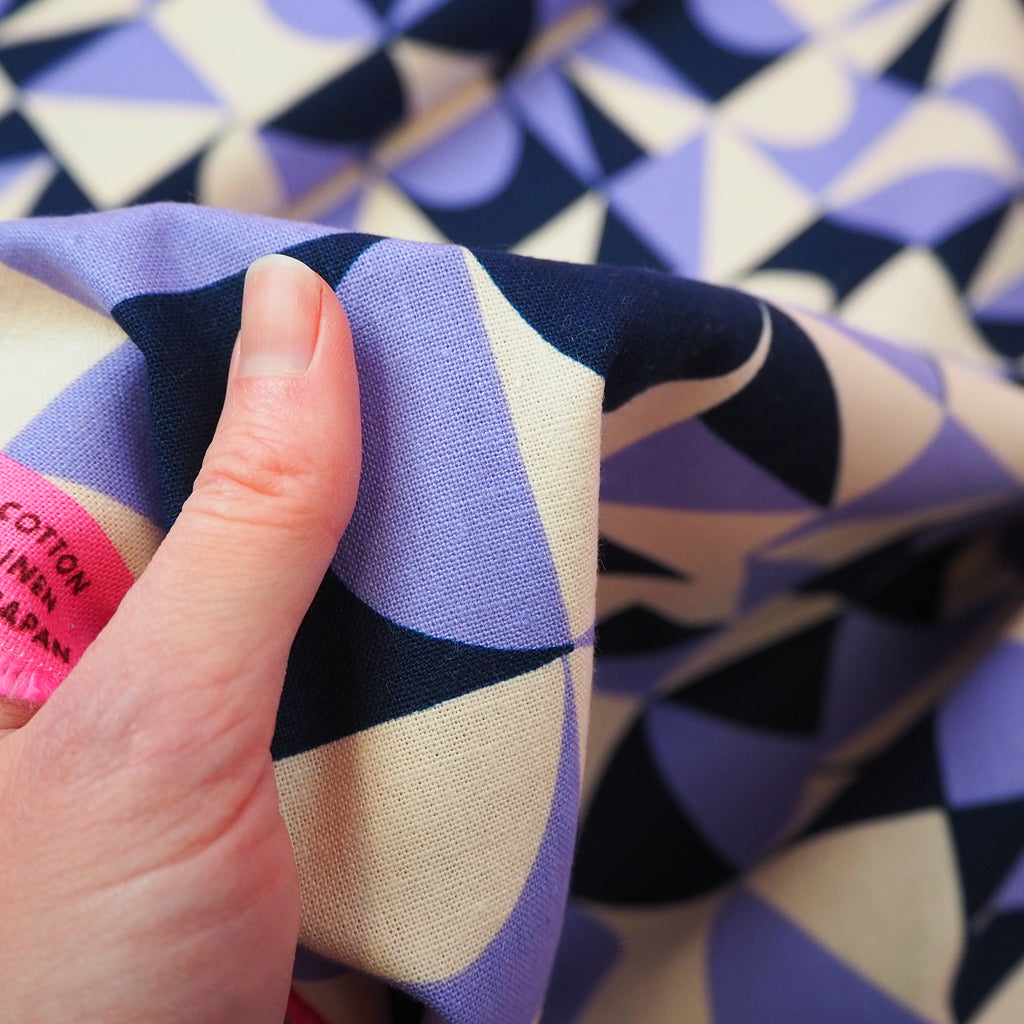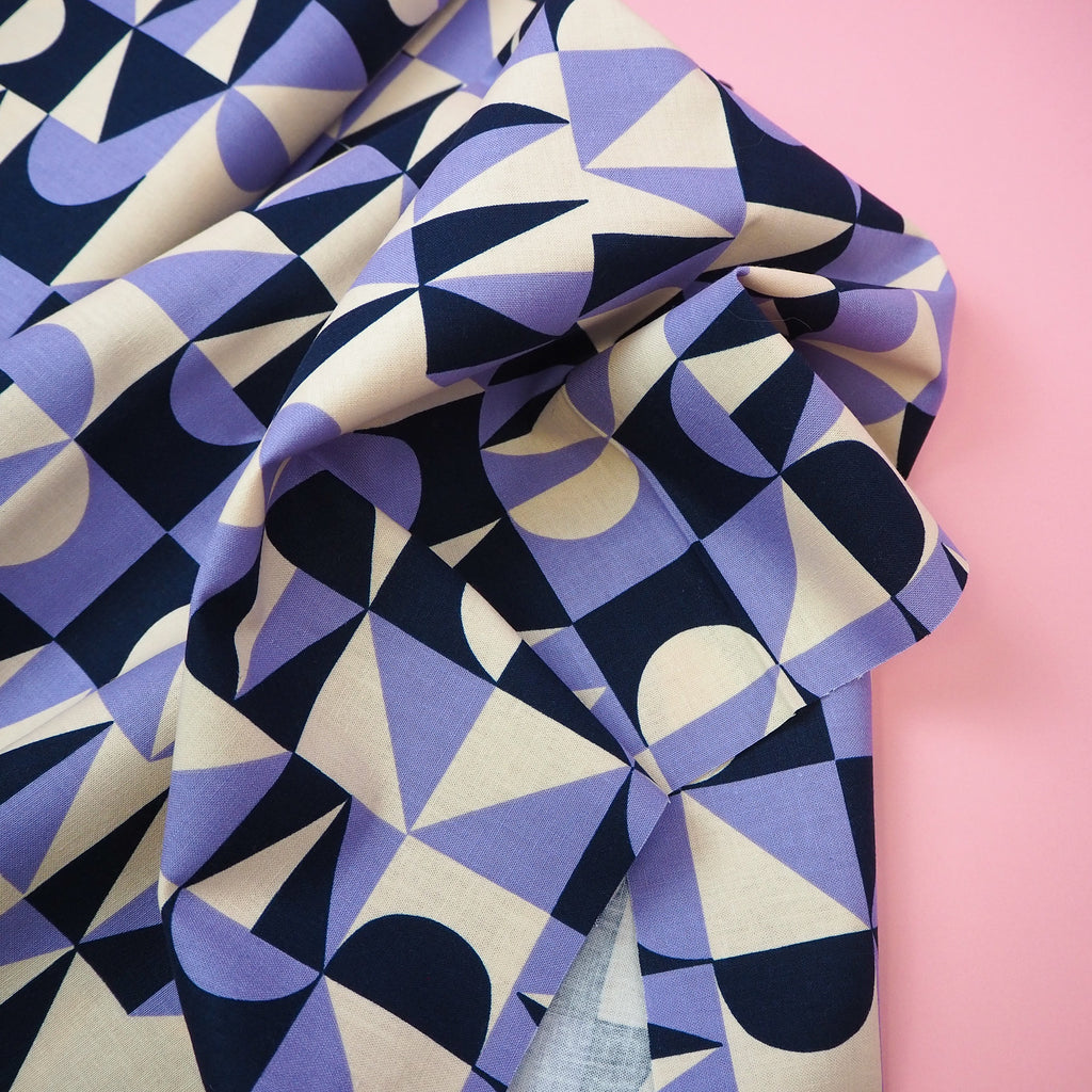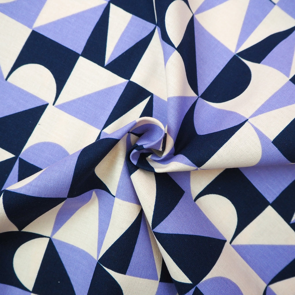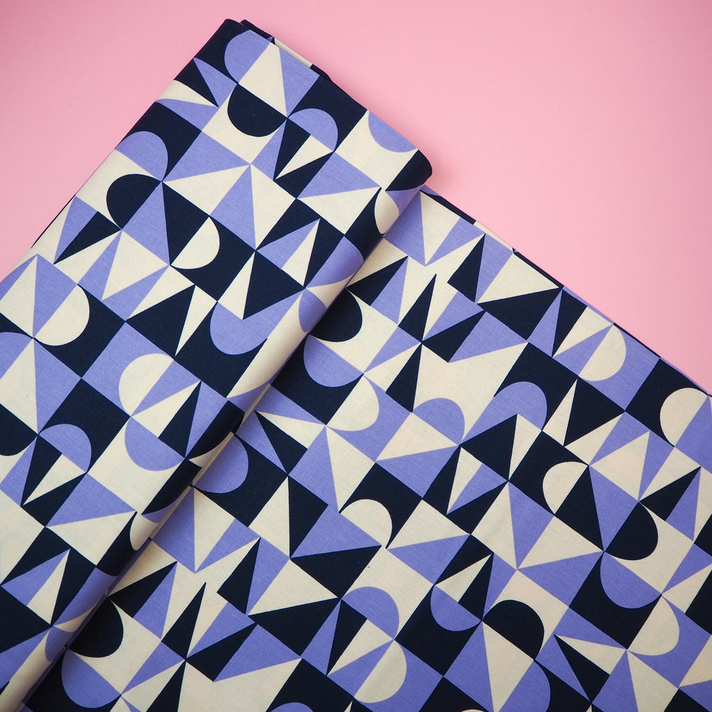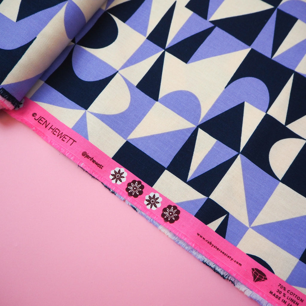Navy, purple and cream building block print lightweight canvas designed by Jen Hewett for Ruby Star Society. Perfect for bags and garments!