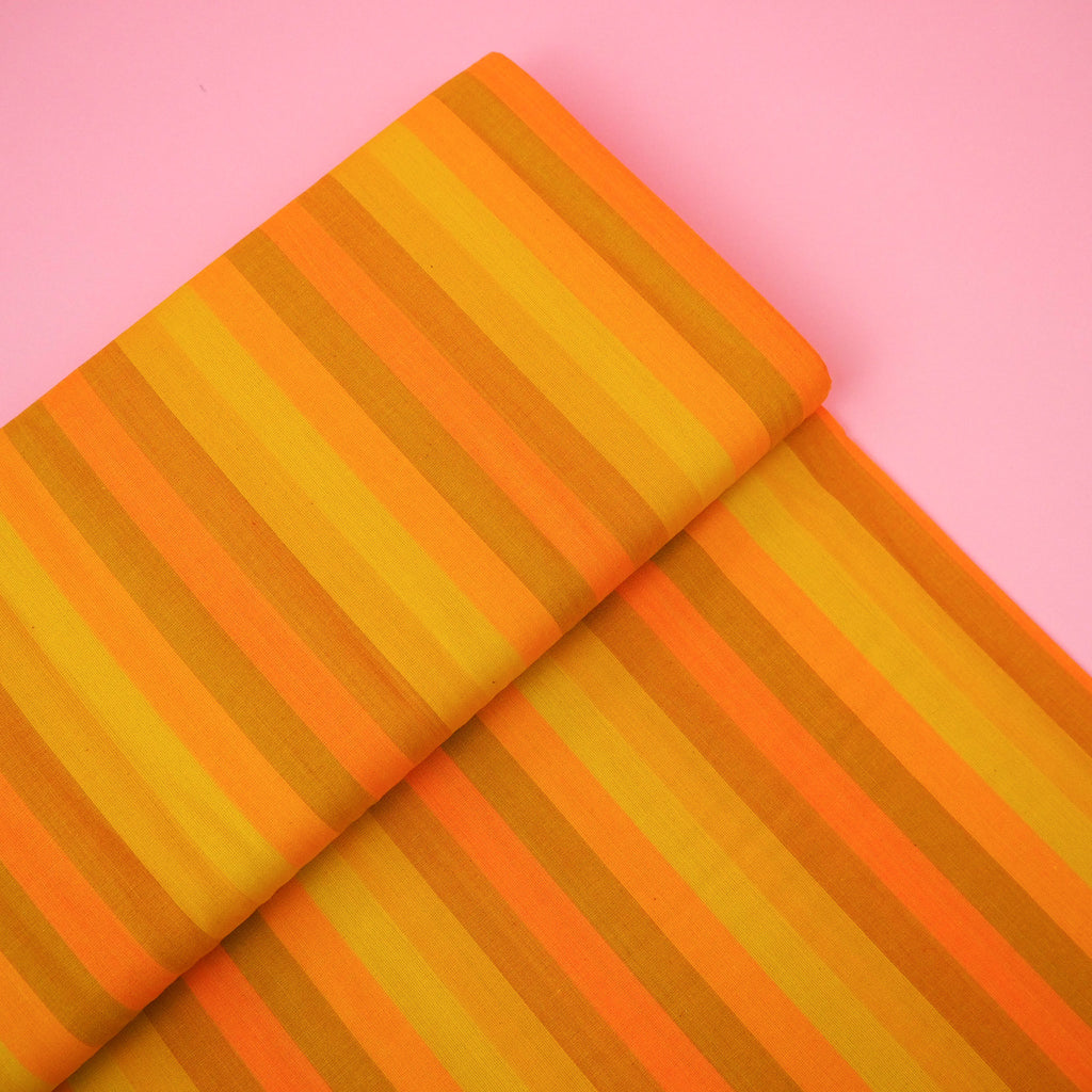 Sunshine striped cotton fabric designed by Alexia Marcelle Abegg for Ruby Star Society.