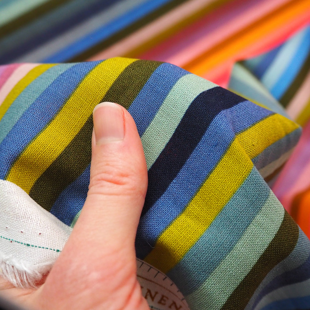 A beautiful linen cotton blend featuring gorgeous coloured stripes!