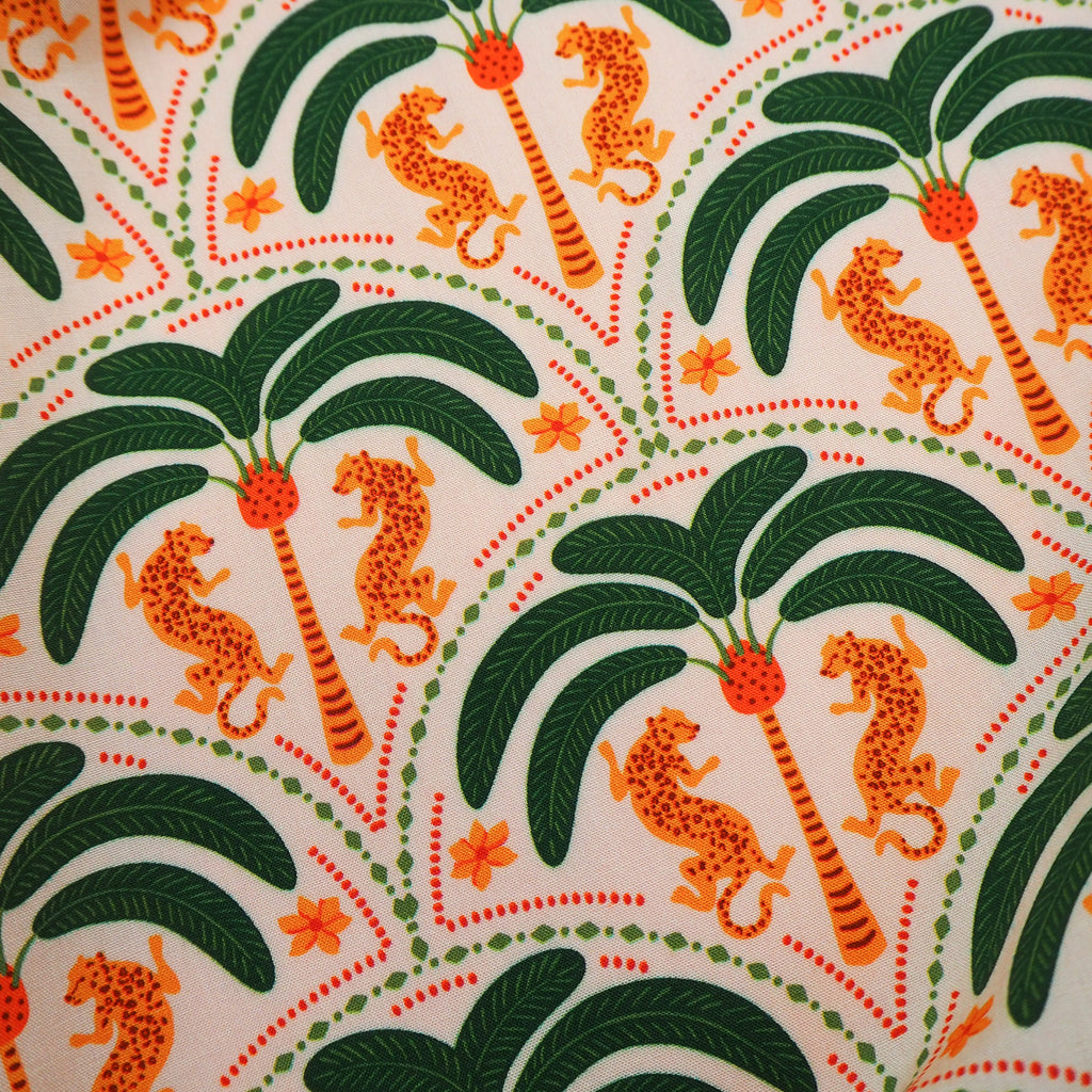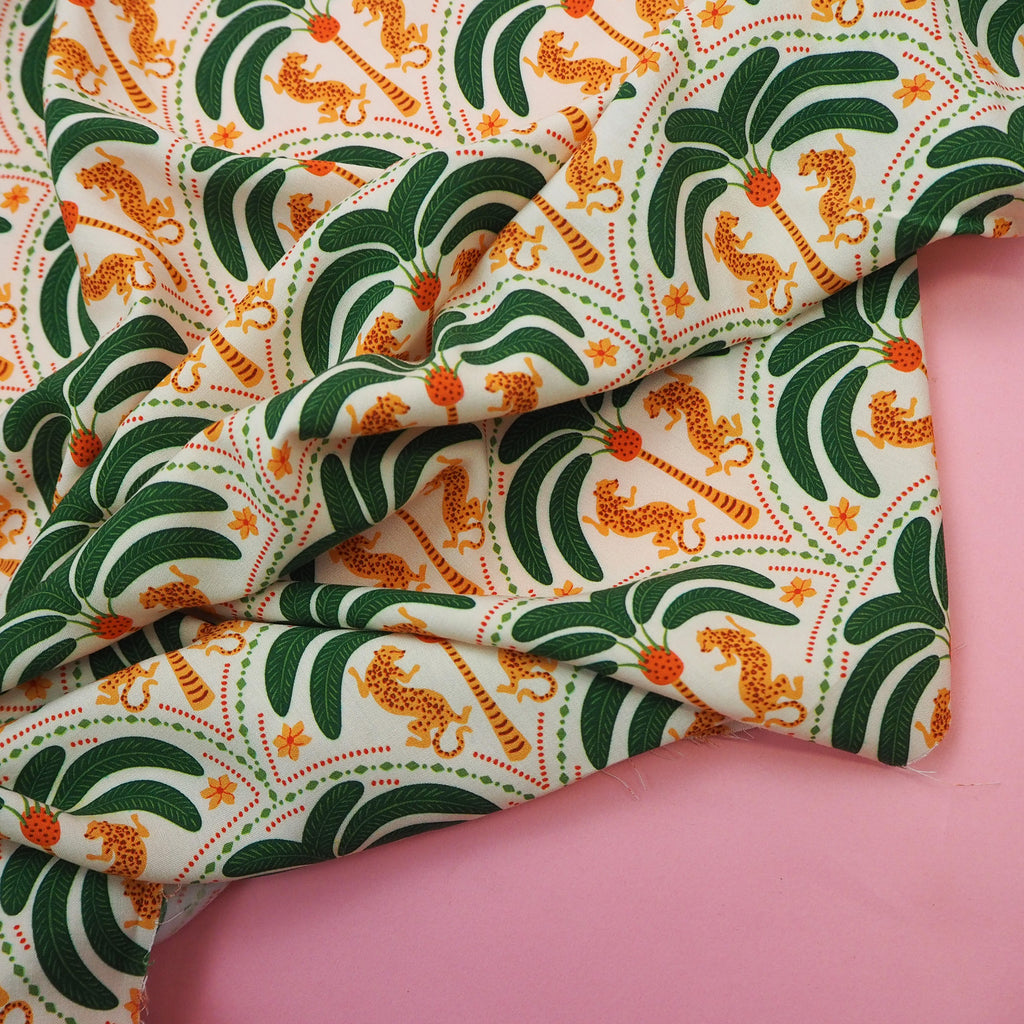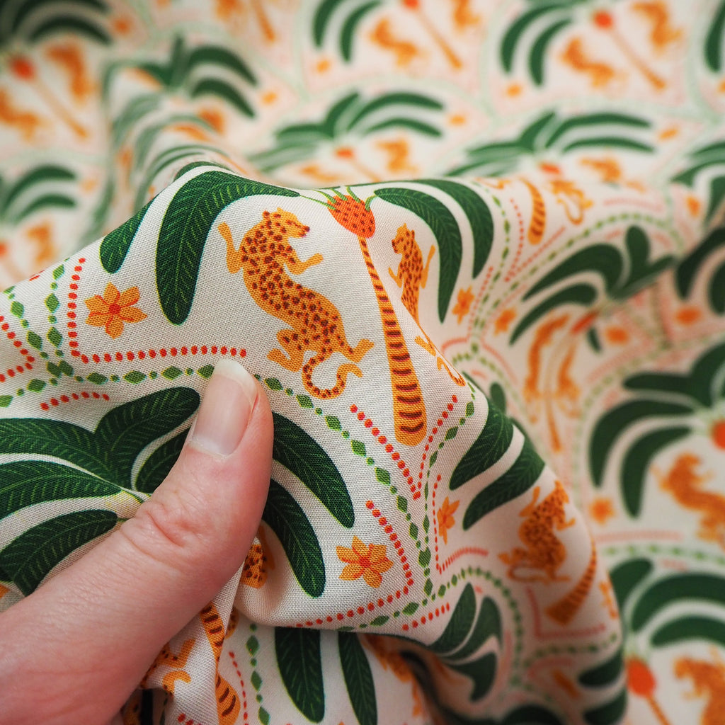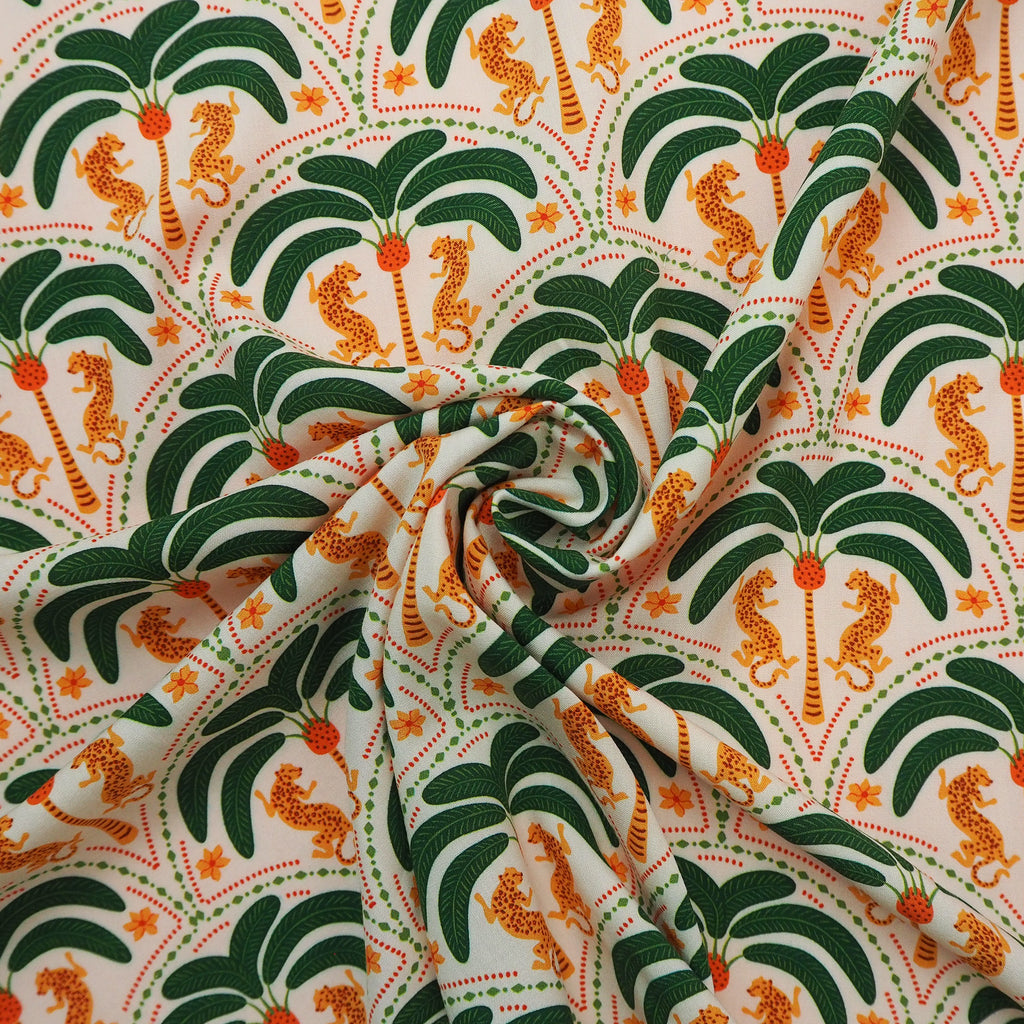 Big Cat and trees fun patterned viscose with great drape.