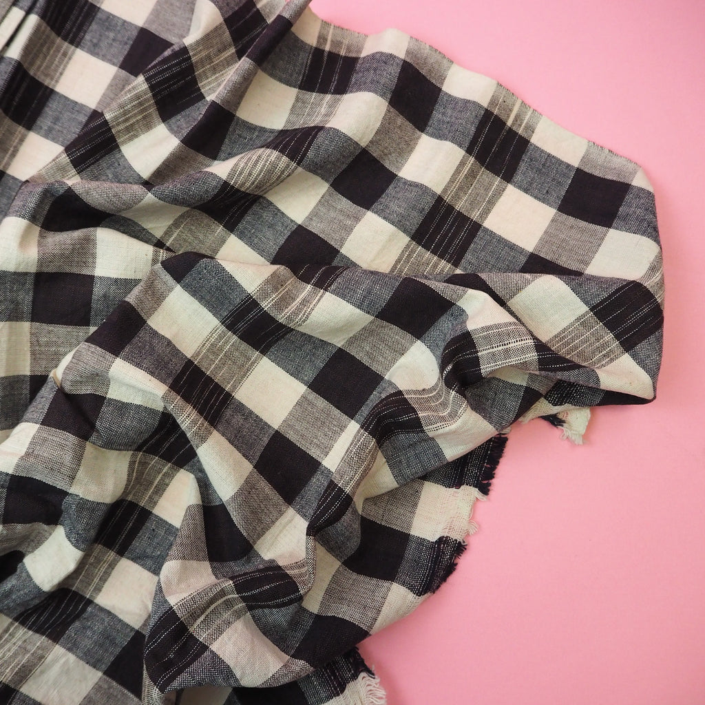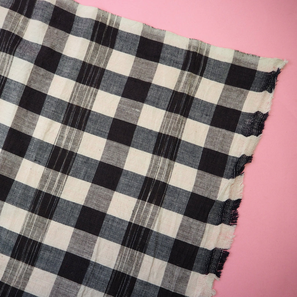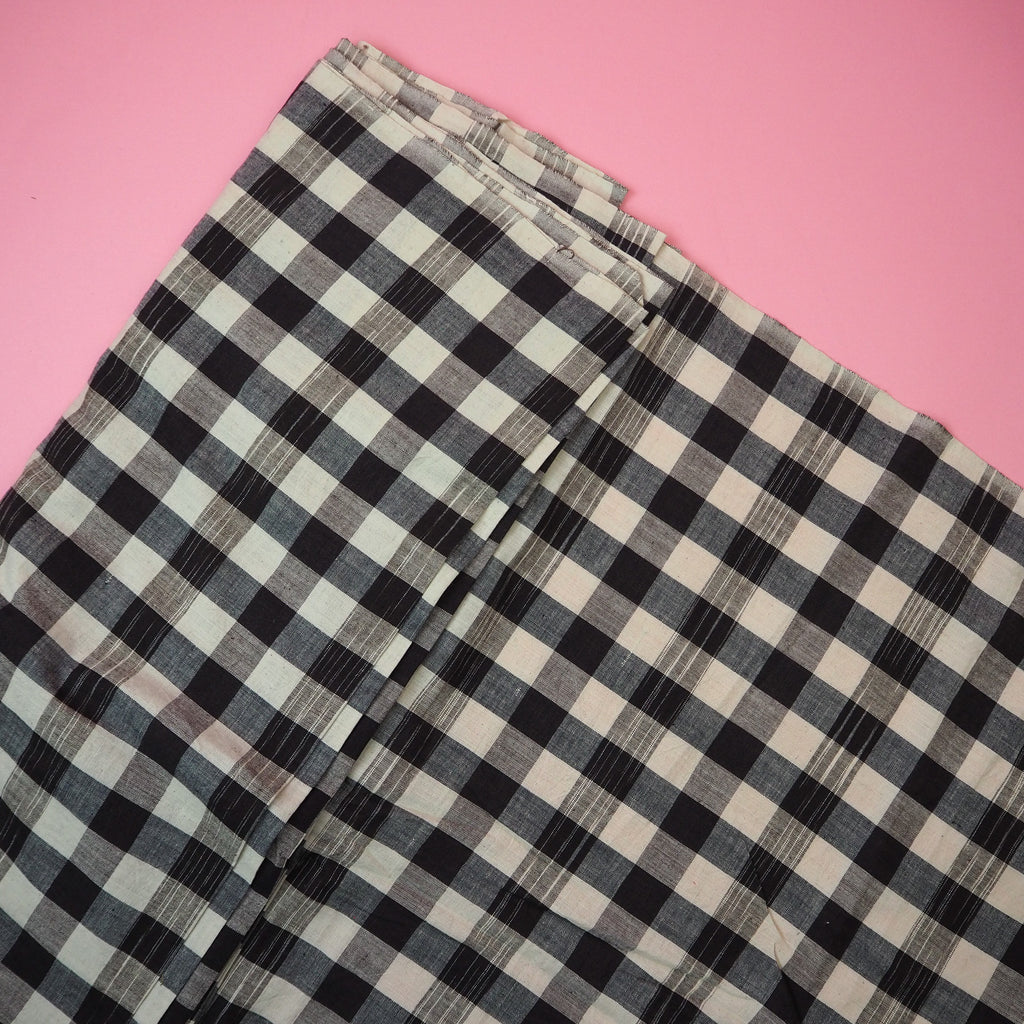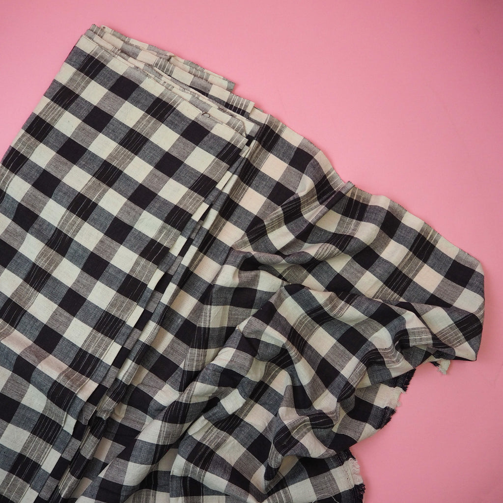 Black and off-white check Indian khadi cotton. Khadi cotton is crafted by handweaving dyed cotton yarns on a handloom to create this beautiful design.