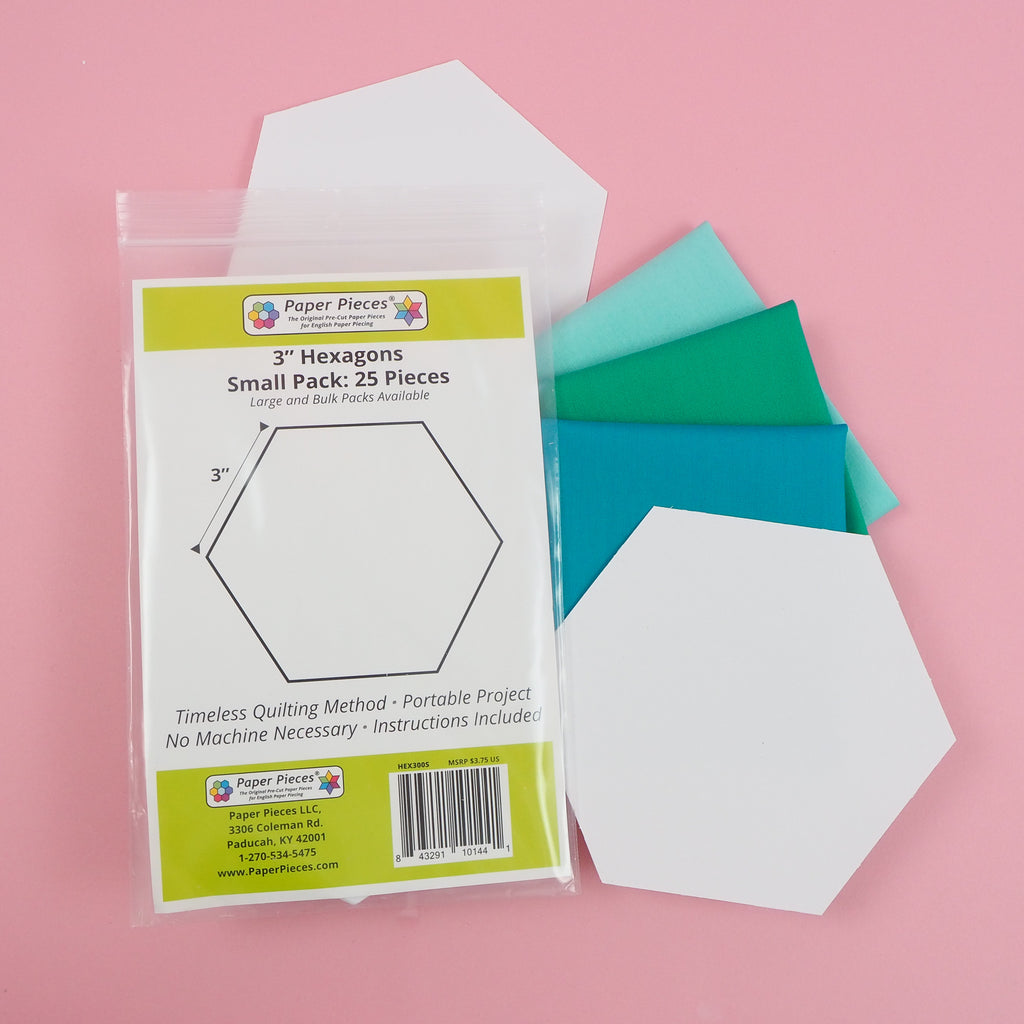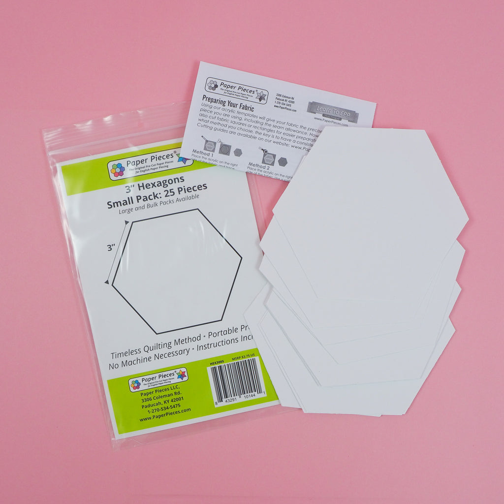 If you've been inspired to try some English Paper Piecing, these templates are the perfect place to start. Made of perfect-thickness paper, these make piecing a breeze. If you thread baste, these can be used again and again.