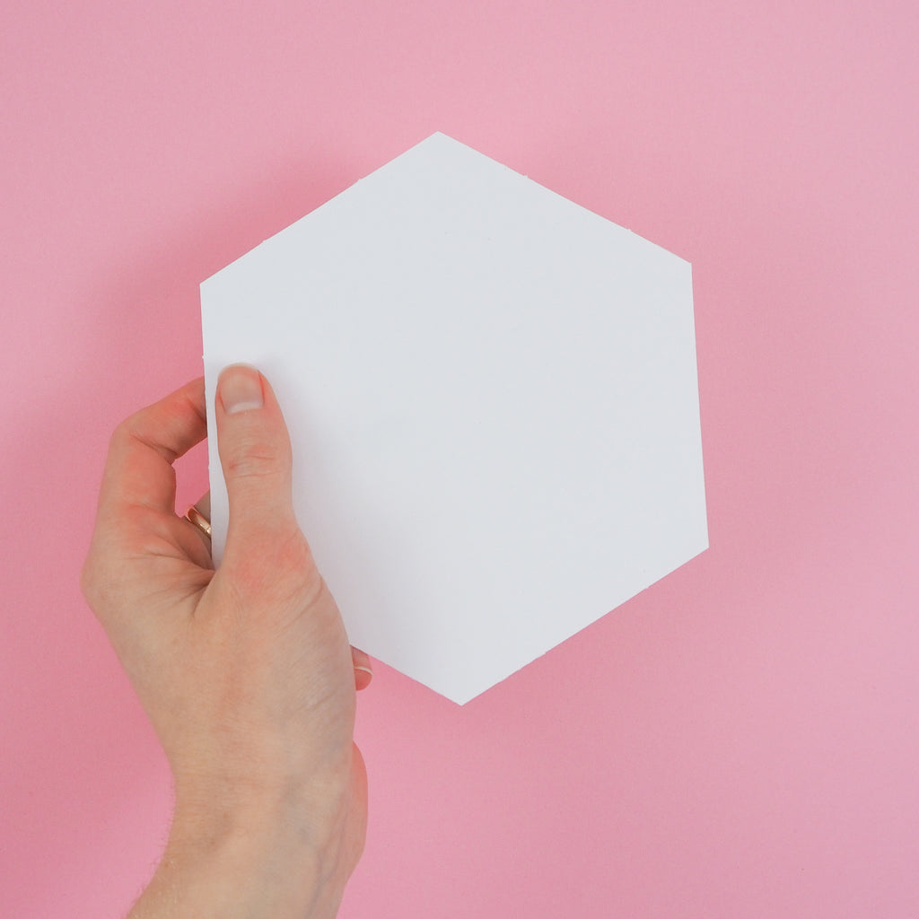 Can be combined with the Add-A-Quarter Ruler for speedy cloth cutting! The three sizes pictured are 1 inch, 2 inch and 3 inch hexagons.