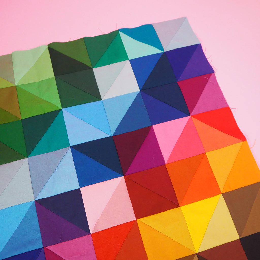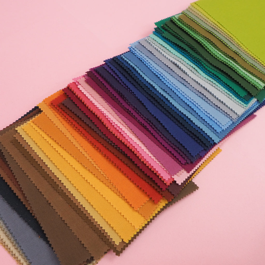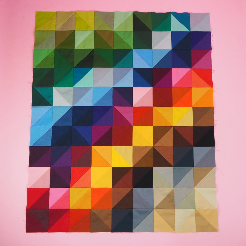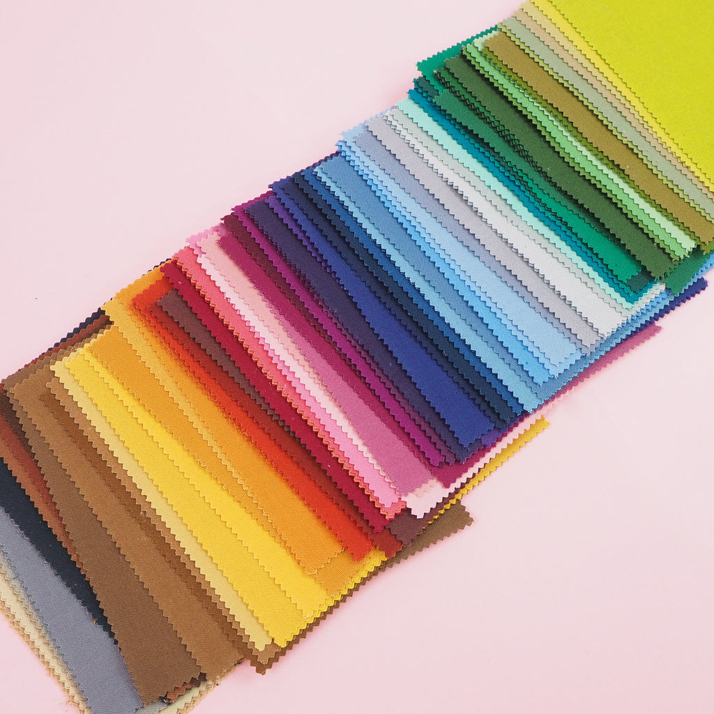 A dusty spectrum Kona Charm Pack with 101 fabric squares: every single square is a different colour! Use these for more muted rainbow projects.