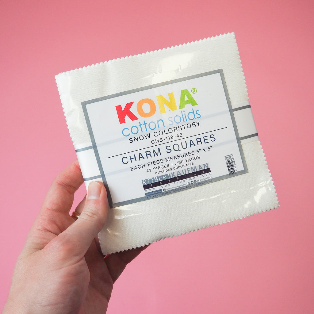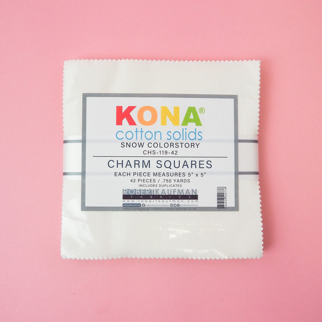 A whole pack of charm squares in Kona "Snow" featuring 42 squares of white fabric. Ideal for some white space to show off your pattern and print fabric!