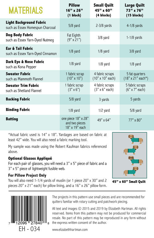 Dogs in Sweaters Quilt Pattern Book - Elizabeth Hartman