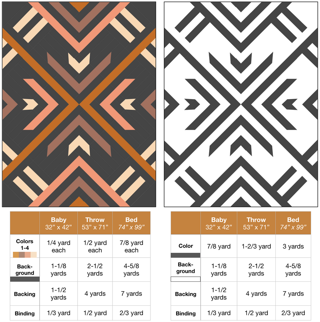Make your own Homecoming Quilt! This bold, symmetrical pattern symbolises warmth, comfort and a sense of belonging - choose your own colour scheme, go monochrome, or use one of the suggestions provided. The pattern provides clear instructions with helpful diagrams and a colouring page to help you plan your quilt.