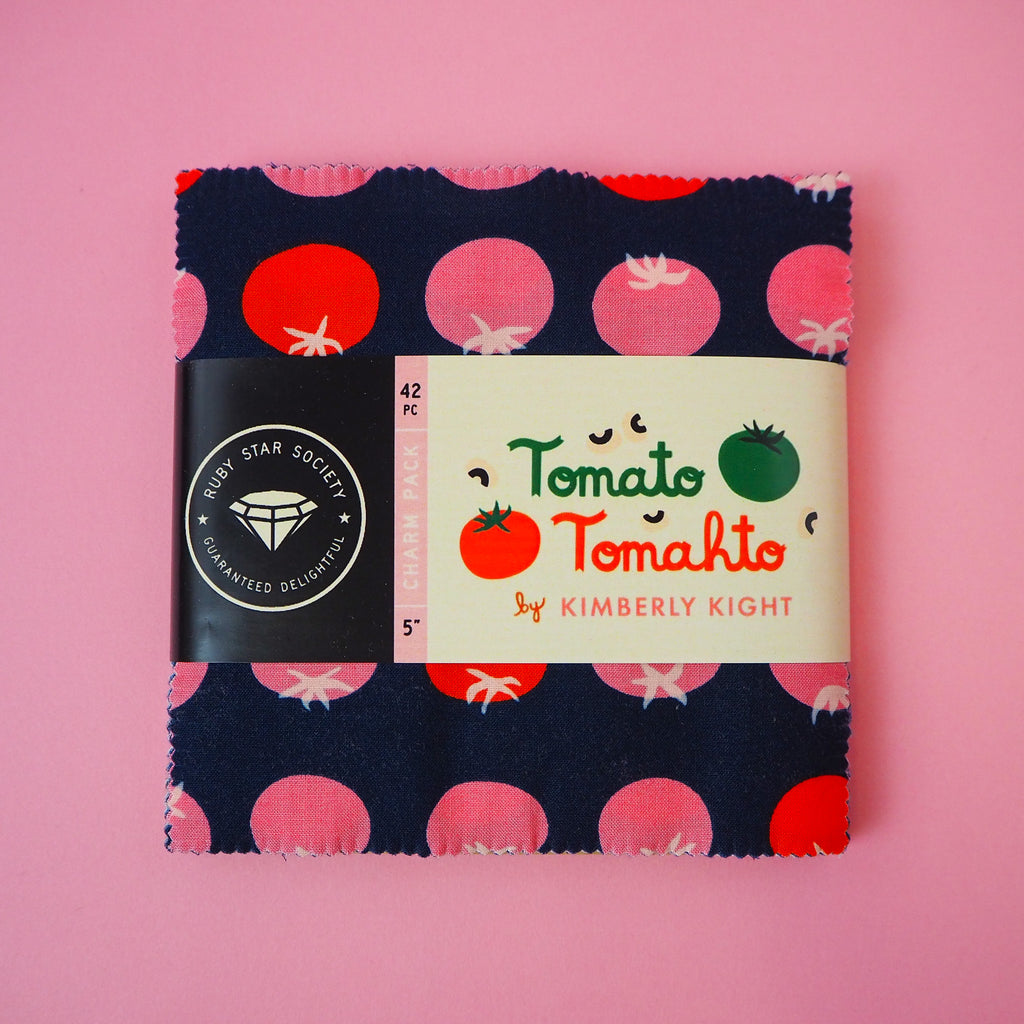 Tomato Tomahto charm pack designed by Kimberly Kight for Ruby Star Society featuring 42 squares of fabric.
