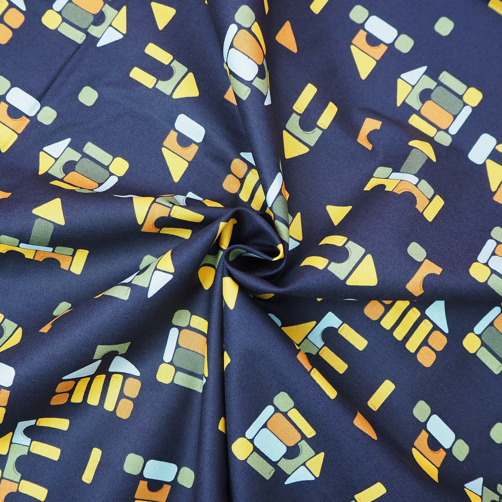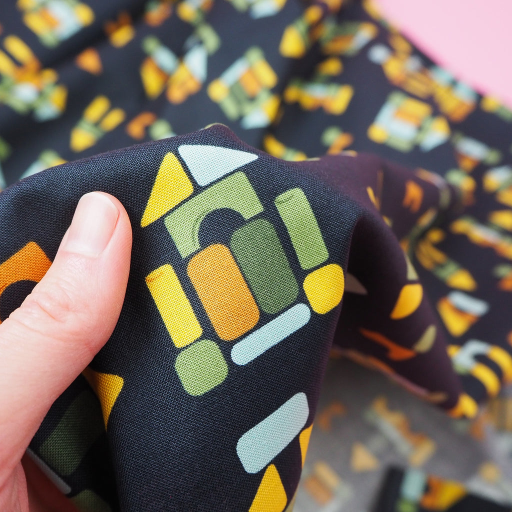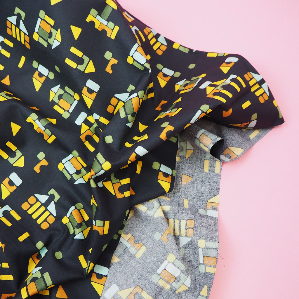 Take a trip back to childhood with this amazing building block print black cotton designed by Stacy Iest Hsu for Moda Fabrics.