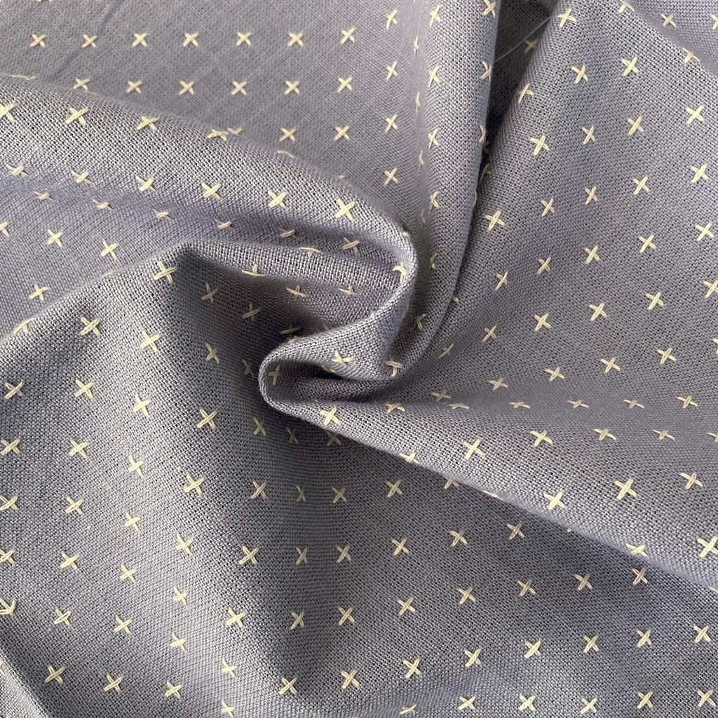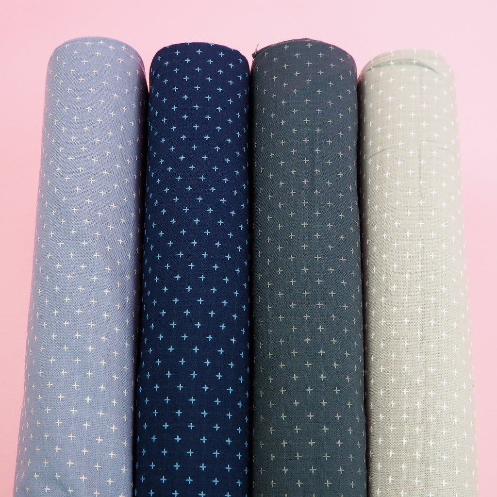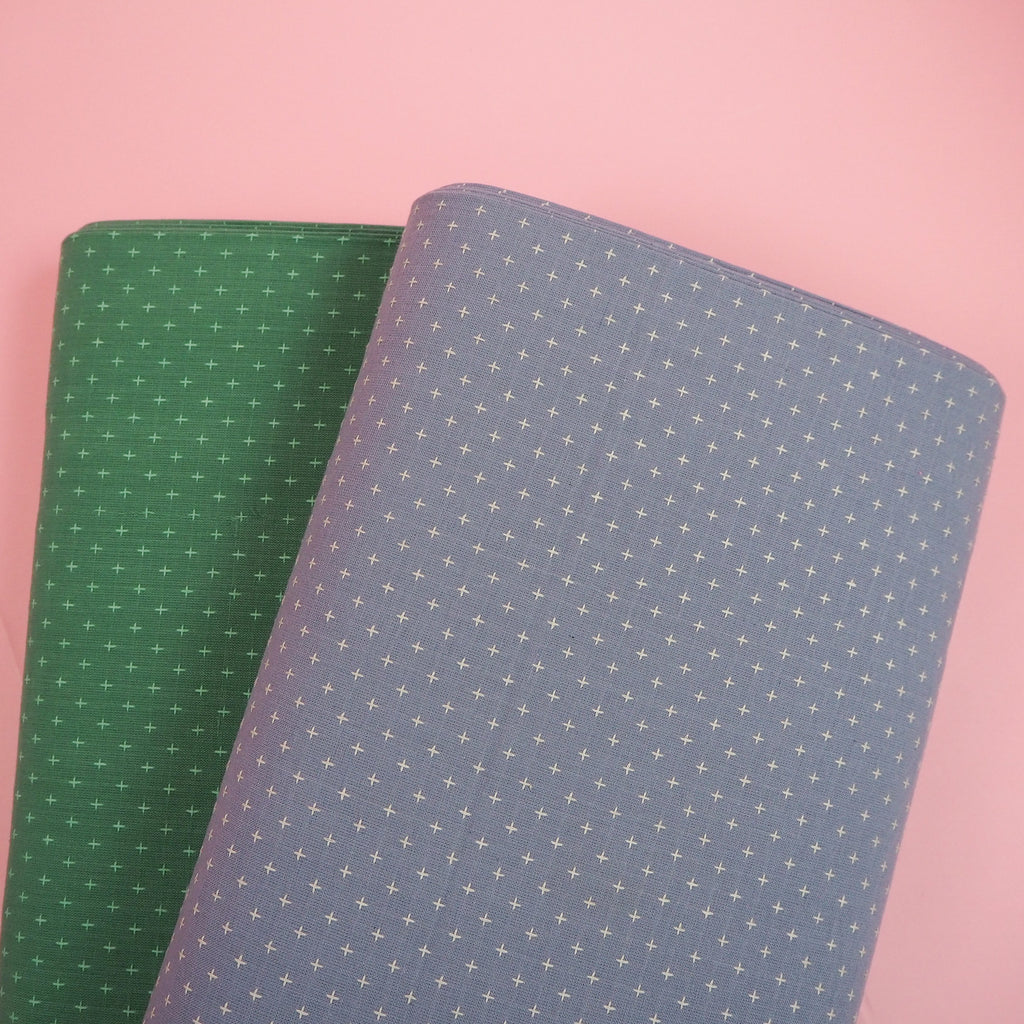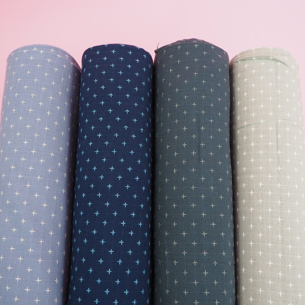 All of our Pluses and Crosses fabrics are loose weave cotton, featuring an embroidered cross pattern in matching or contrasting colours. They are fairly traded an made using a special weaving process to create the look of hand stitching. They're beautifully textured and suitable for quilting, garment making, bag making, and some home furnishings.