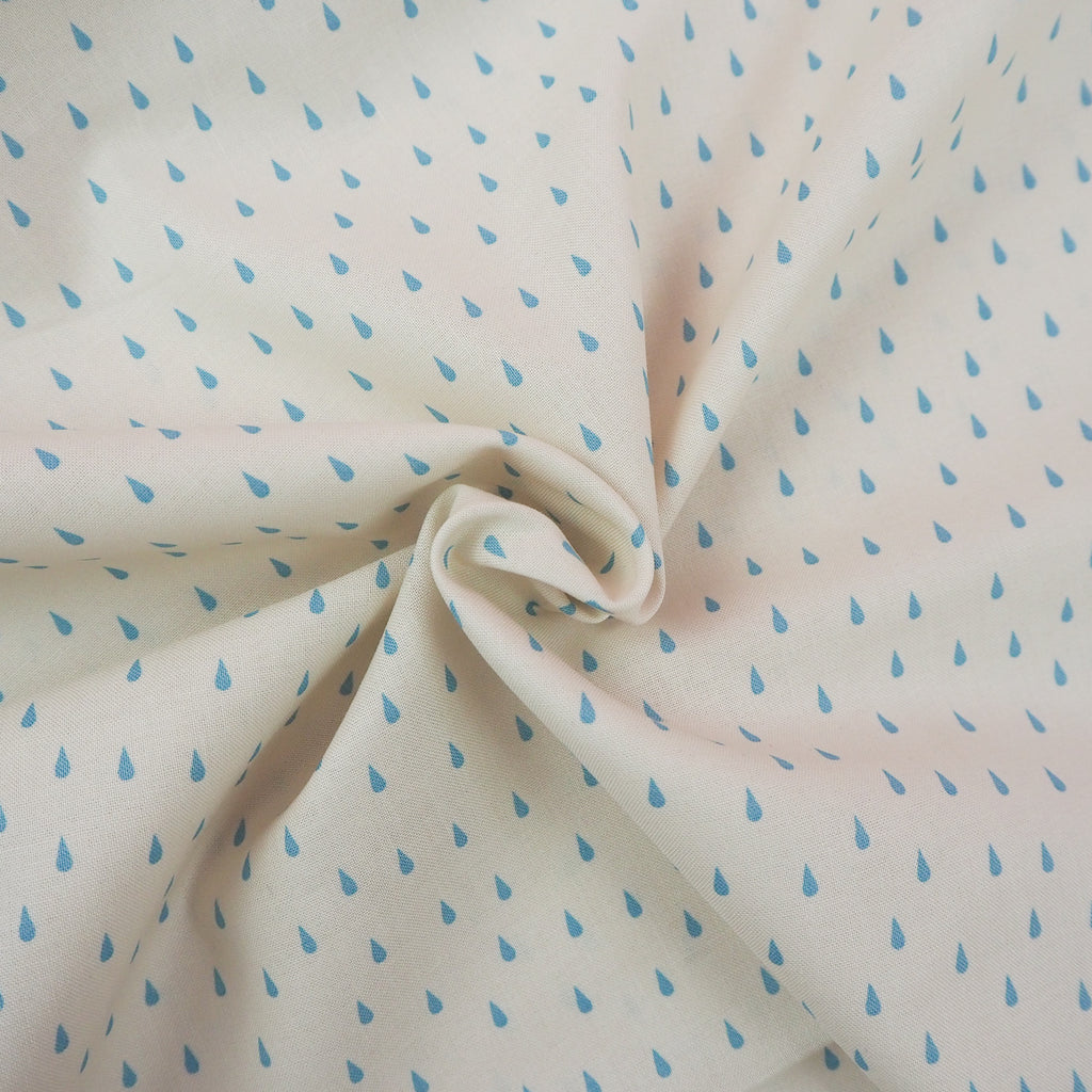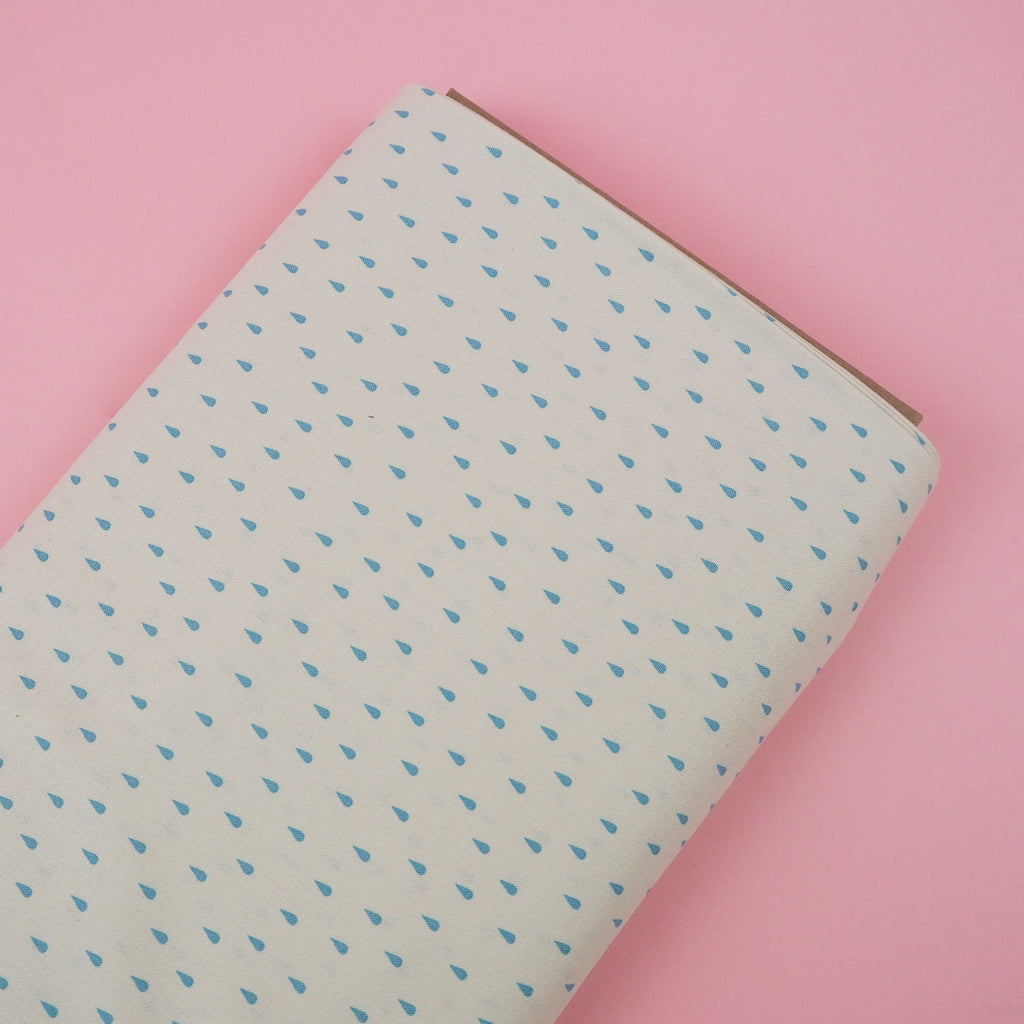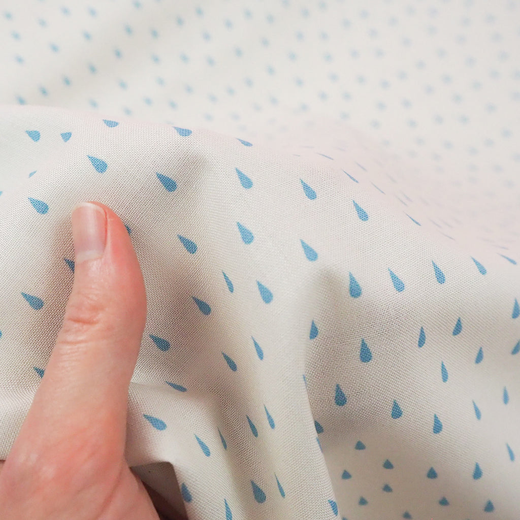 Pretty blue raindrops on cream quilting cotton designed by Naomi Wilkinson for the Simple Pleasures collection from Figo Fabrics.