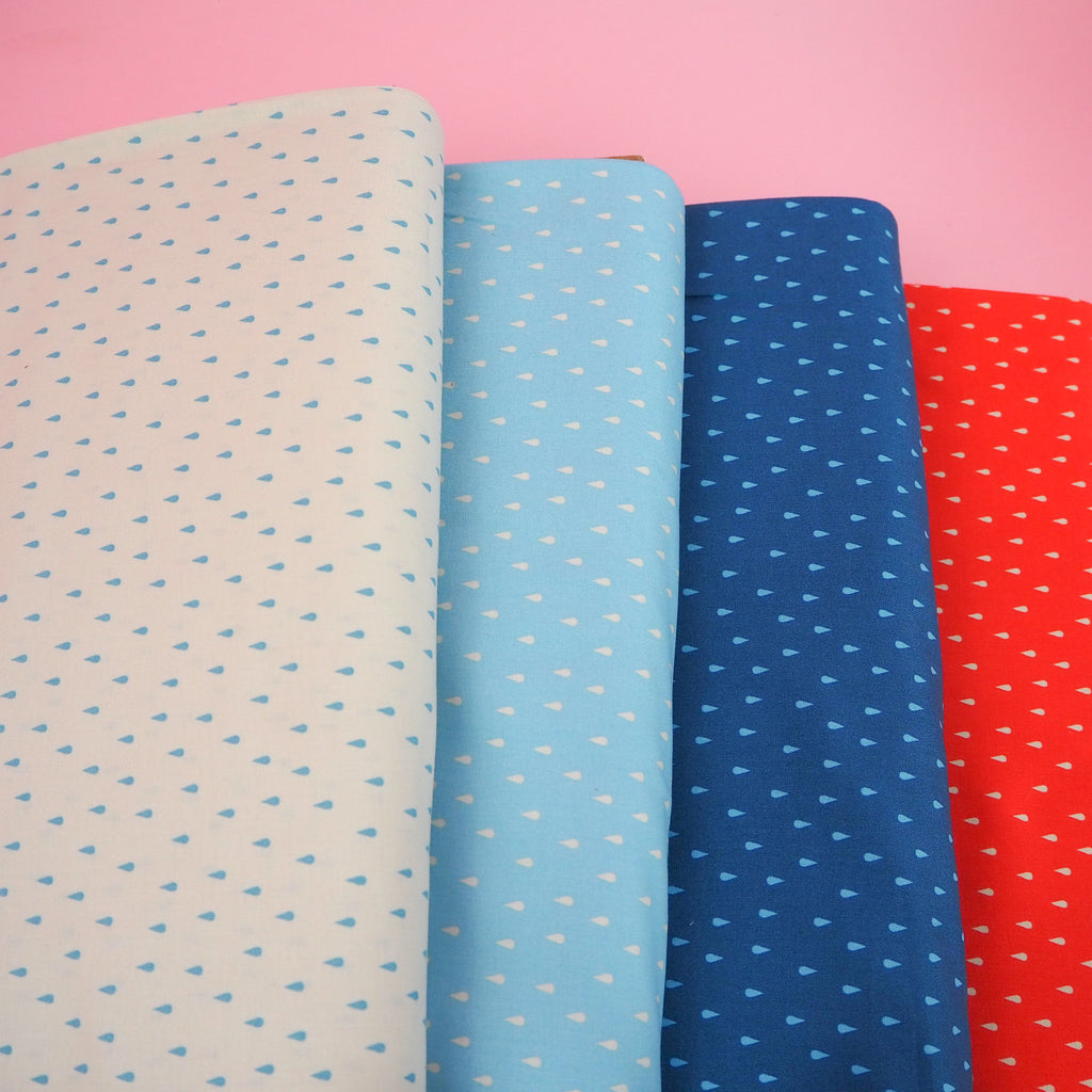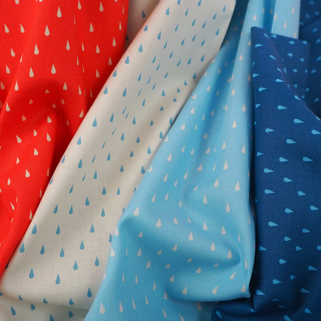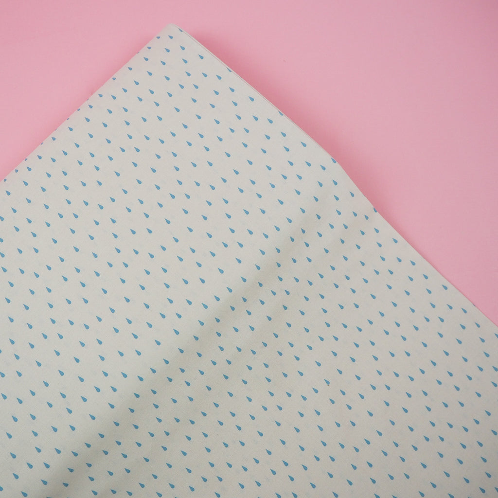 Pretty blue raindrops on cream quilting cotton designed by Naomi Wilkinson for the Simple Pleasures collection from Figo Fabrics.