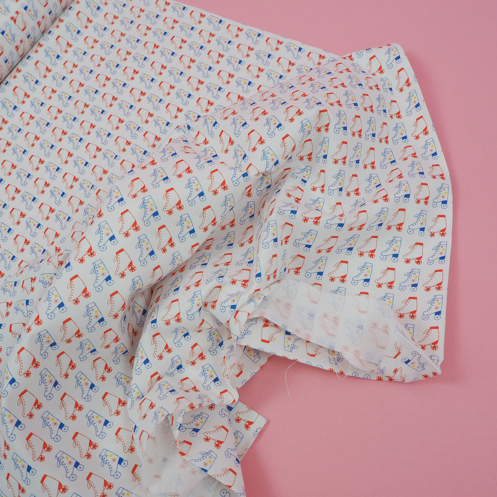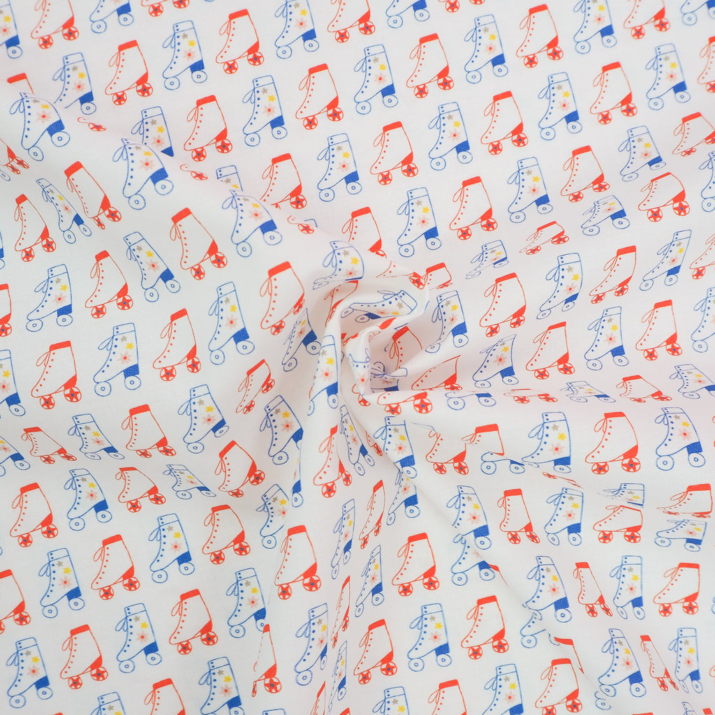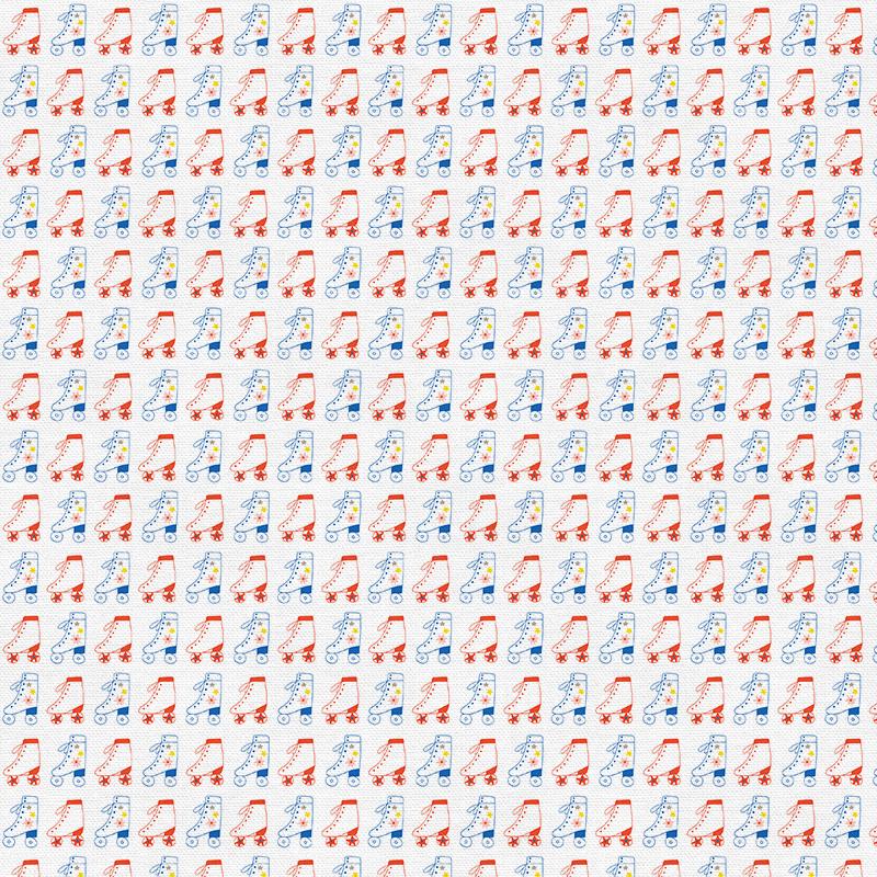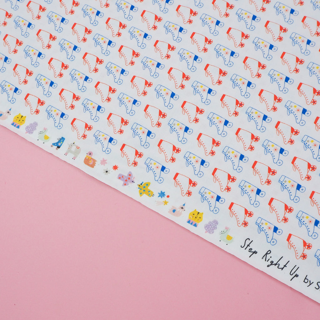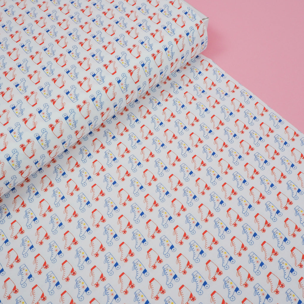 Inspired by a trip to the circus, this red, white and blue roller skate print is ideal for a cute cushion, retro shorts or a bag for your skates!
