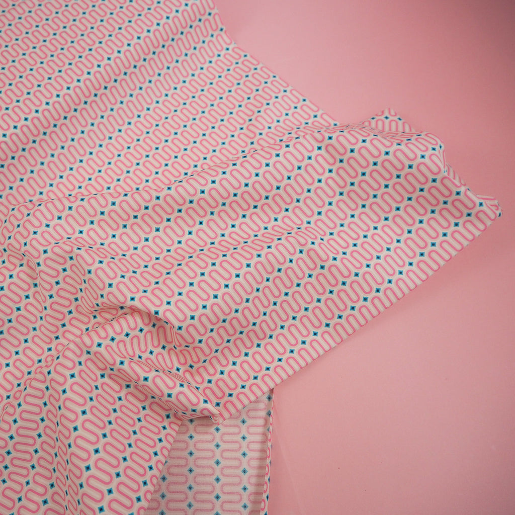 Become bewitched with this super cute retro pattern in pink and blue from Art Gallery FabricsThis is part of the Sunburst Fun in the Sun range which will transport you to the sunshine of Palm Springs.