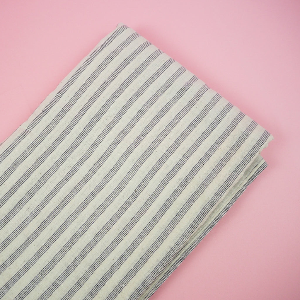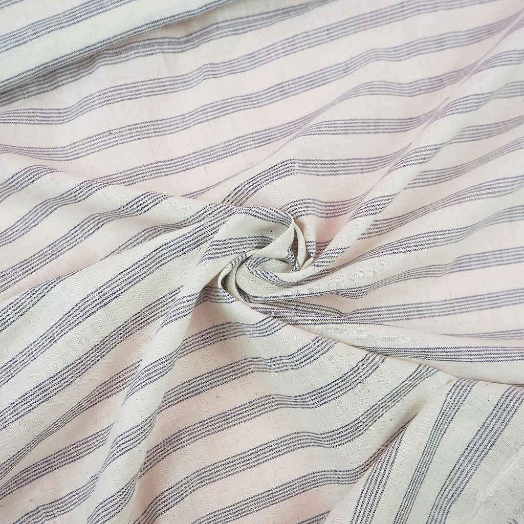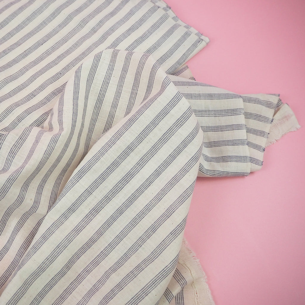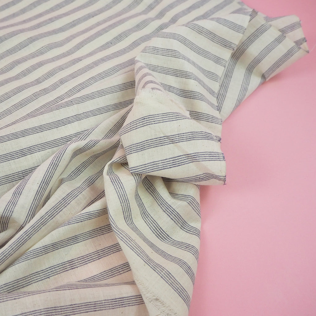 Five fine indigo stripes on a cream background make up this very slightly sheer cotton.