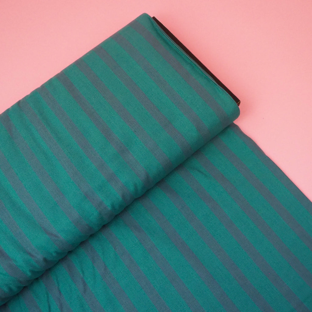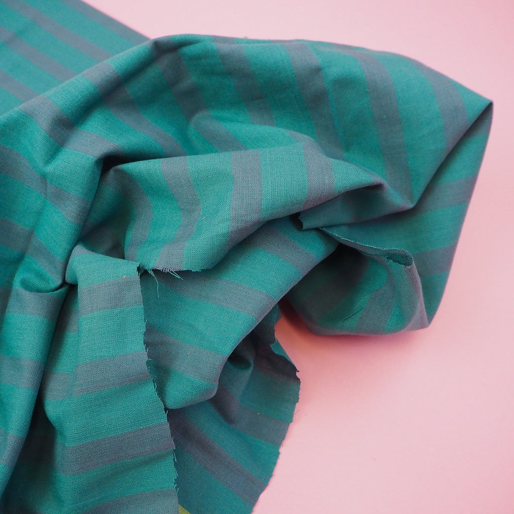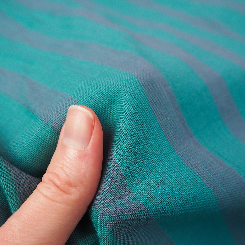 Striped cotton fabric in "vintage blue" designed by Alexia Marcelle Abegg for Ruby Star Society.