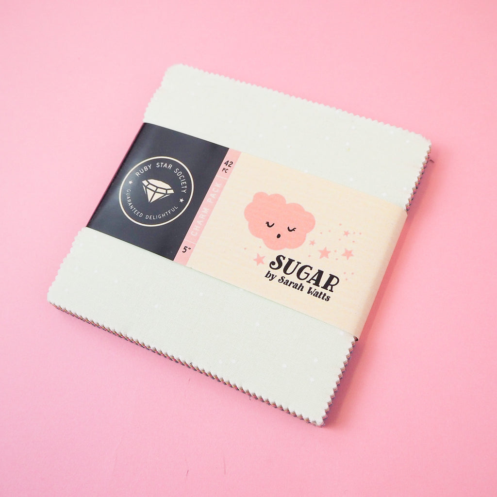 Sugar charm pack designed by Sarah Watts for Ruby Star Society featuring 42 squares of fabric.