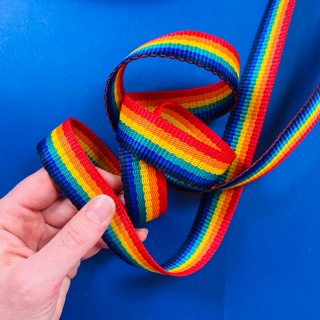 Add a spot of rainbow fun to any bag project! Could also be used to make belt loops, shoulder straps, belts, dog leads, all sorts!