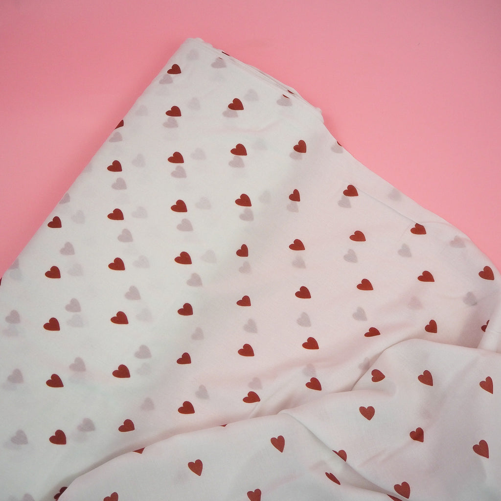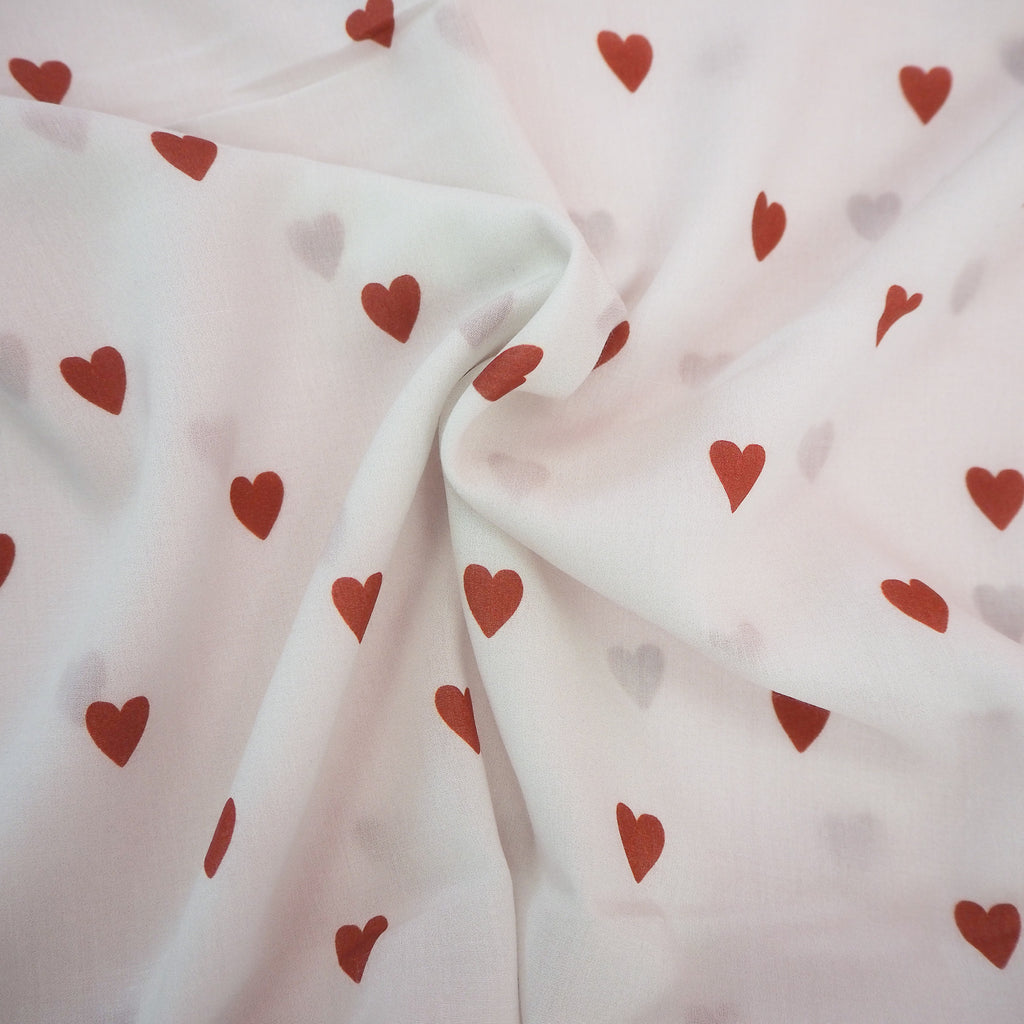 Sheer and beautiful, these lightweight hearts are adorable! Fine, flowing off-white fabric with blood-red hearts, really lovely drape, this would make a gorgeous vintage style gown. Ideal for skirts, blouses, dresses and more. Channel your inner romantic with this Tencel lawn.