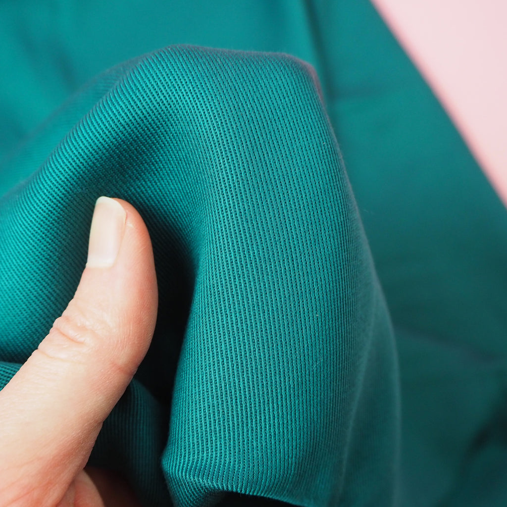 This tencel twill is super soft with a beautiful drape in a lovely teal colour. Suitable for dresses, shirts, skirts or even trousers!