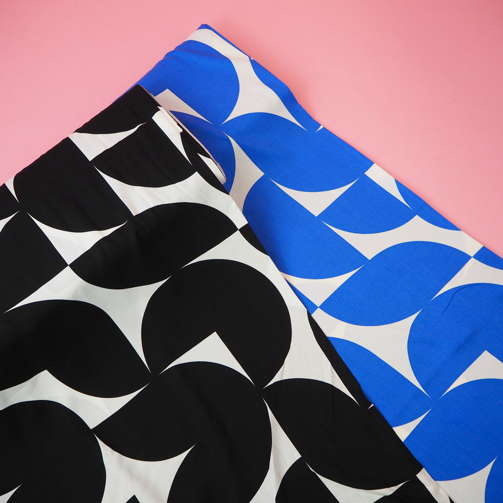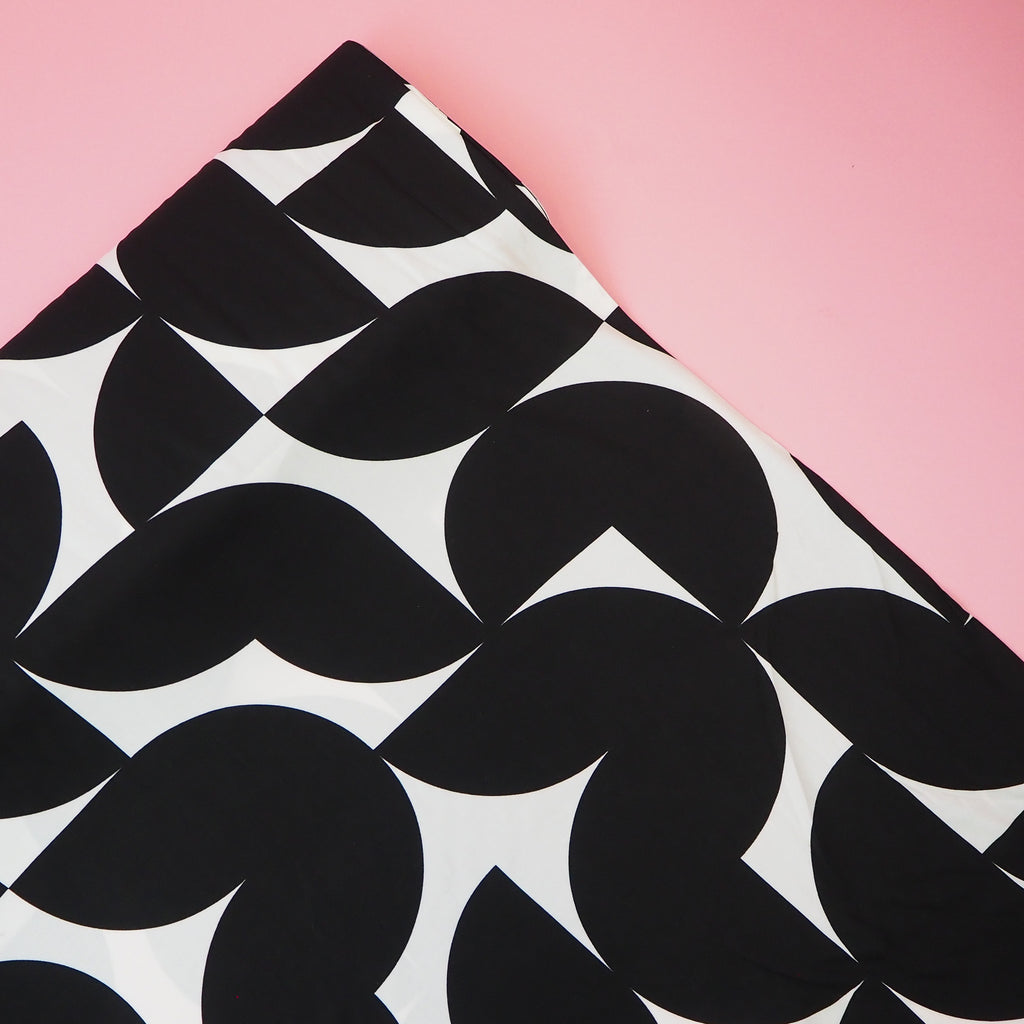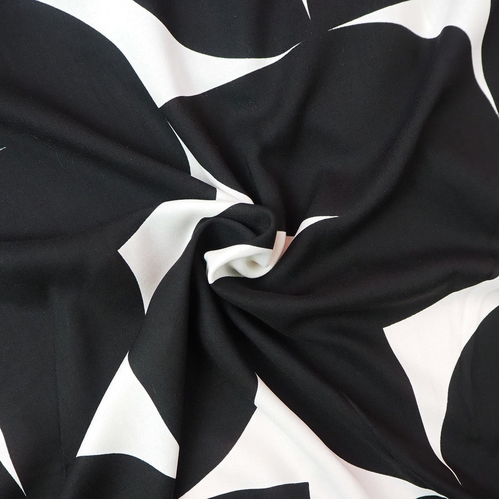 This lovely black and white viscose fabric is floaty and light with beautiful drape.